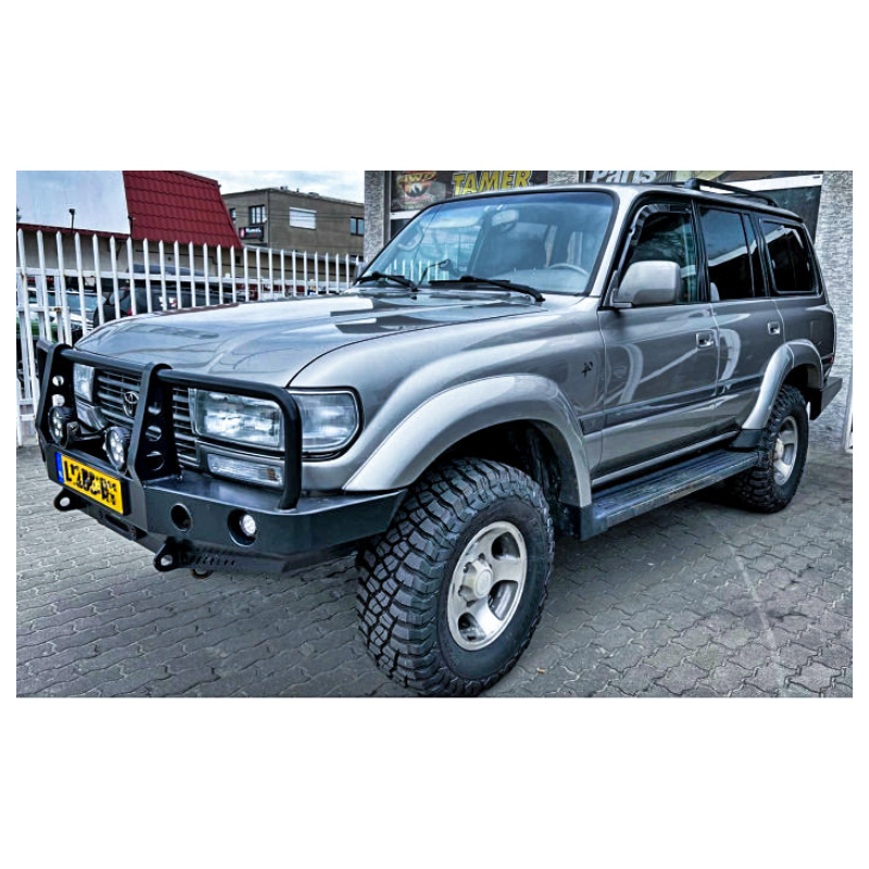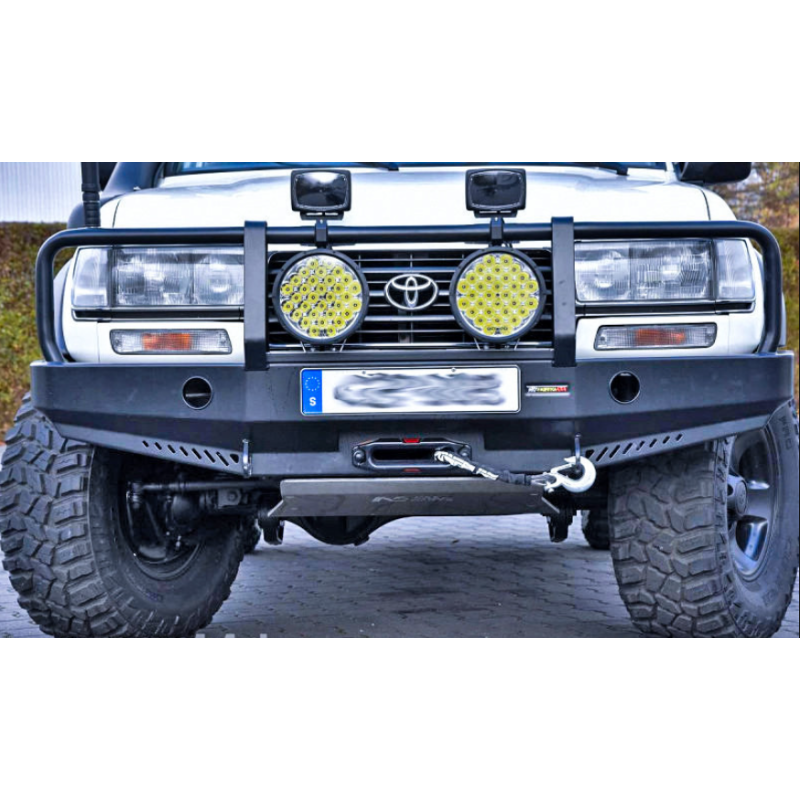 Metal (steel) front bumper with winch mounting plate for Toyota Land Cruiser J80, Lexus LX 450 1990-1997. The bumper can be ordered with a screw-on bull bar.