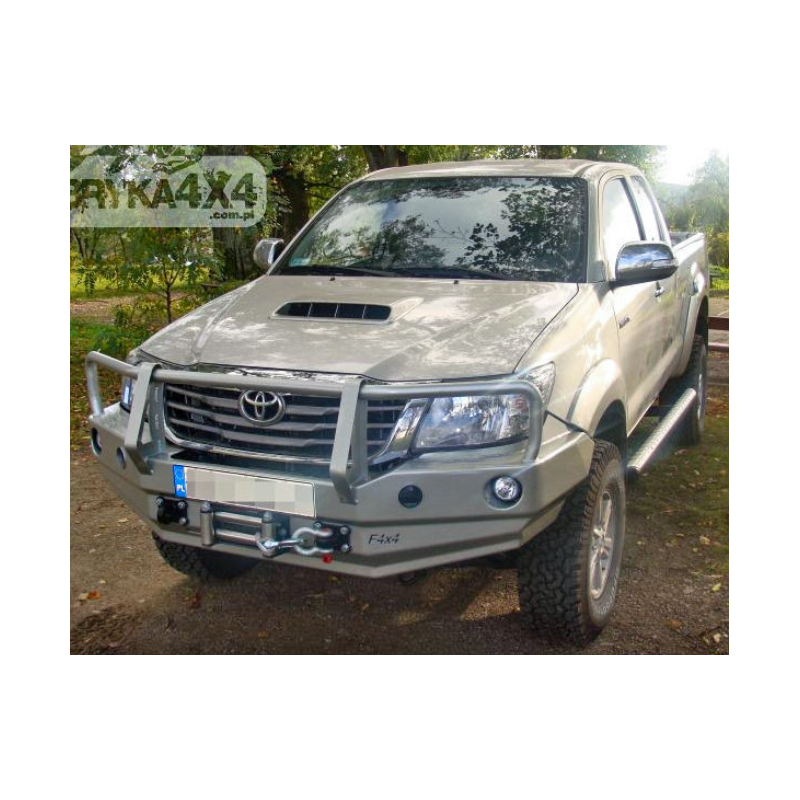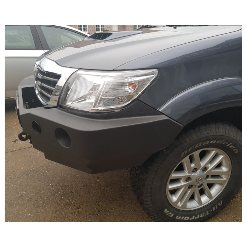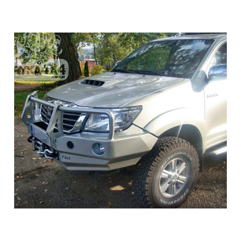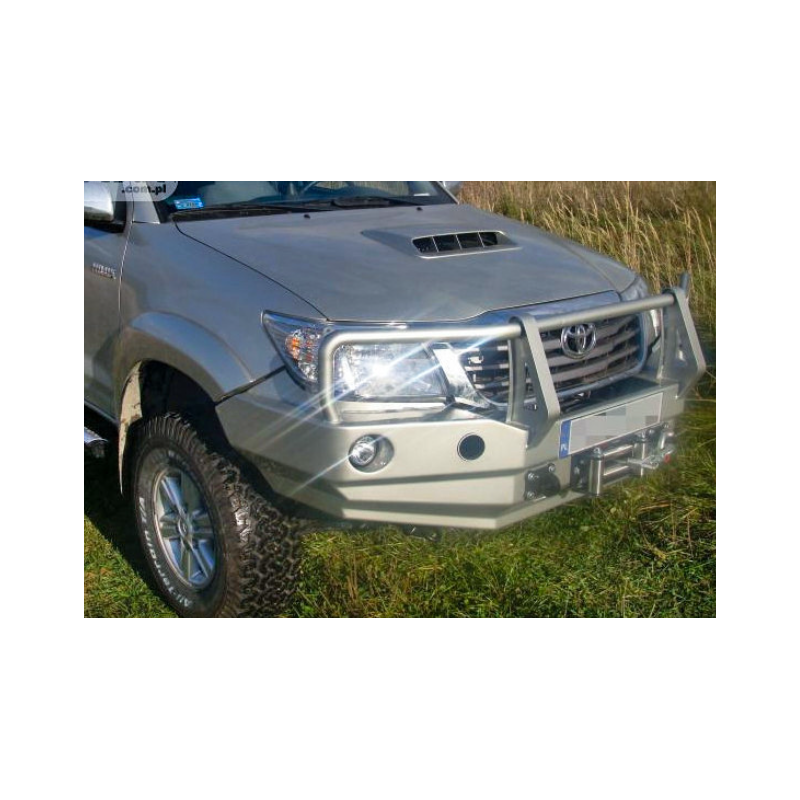 Metal (steel) front bumper with winch mounting plate for Toyota Hilux Vigo AN10, AN20, AN30 2011-2015 (2nd facelift). The bumper can be ordered with a screw-on bull bar.