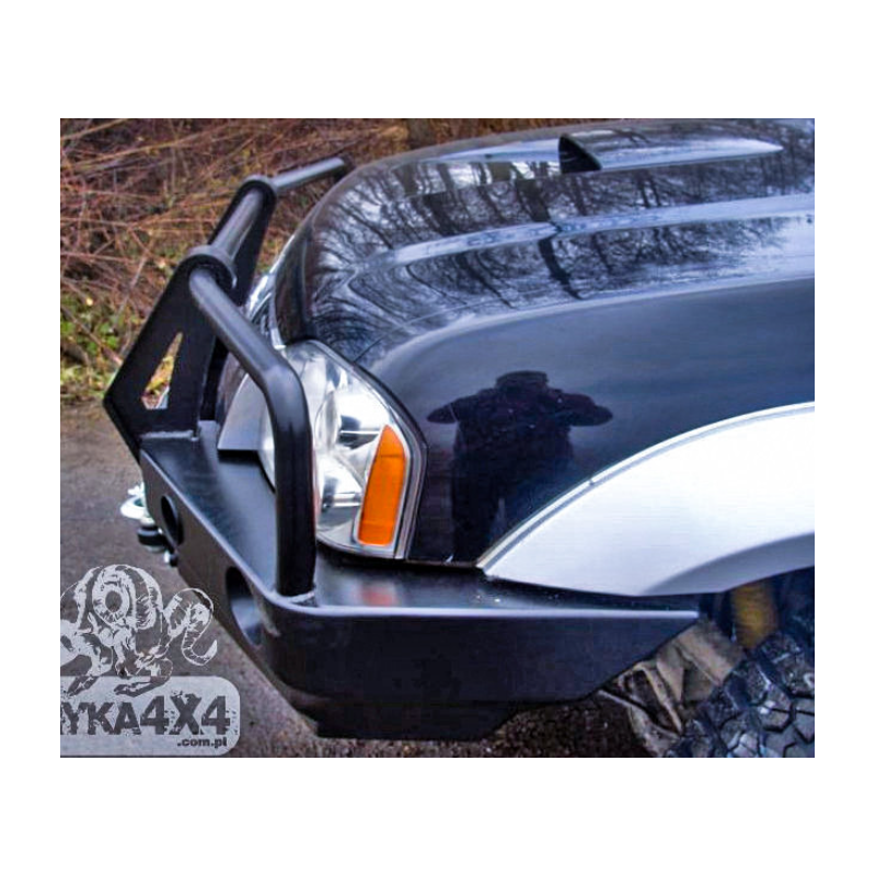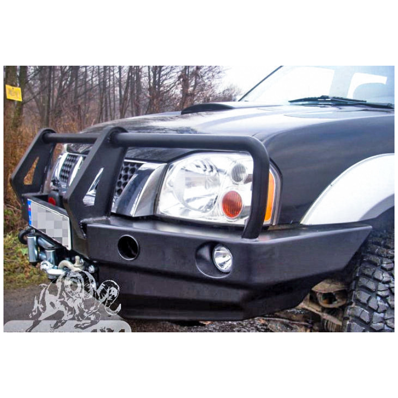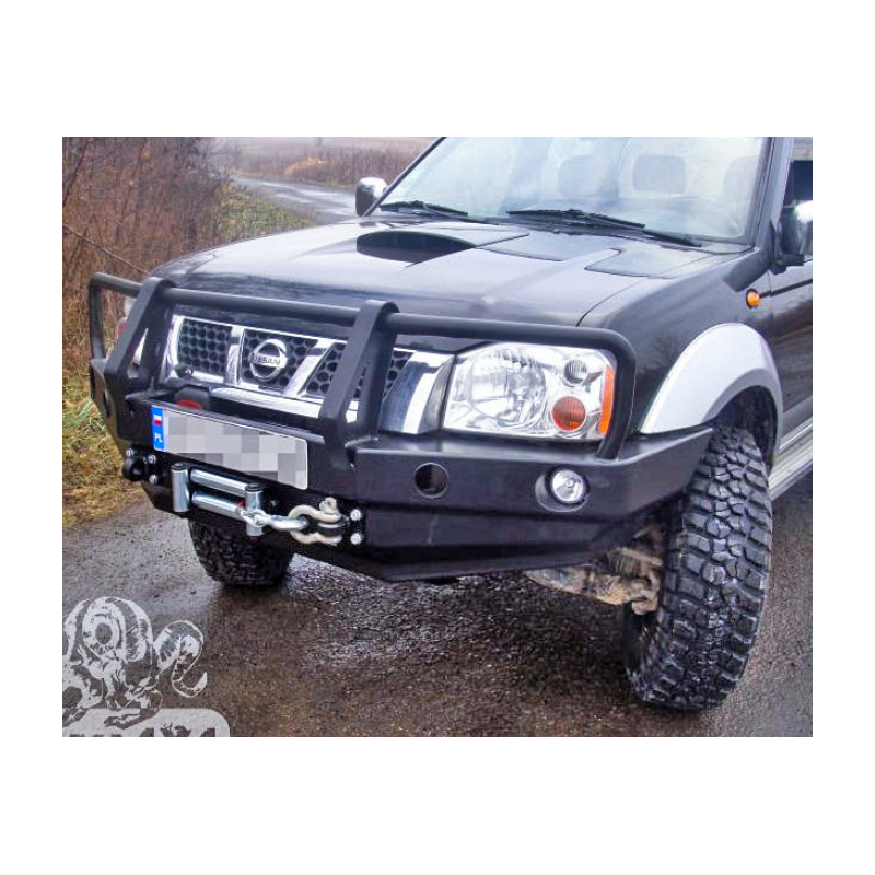 Metal (steel) front bumper with winch mounting plate for Nissan Navara/NP300/PickUp/Frontier/Hardbody D22 2001-2004 (facelift). The bumper can be ordered with a screw-on bull bar.