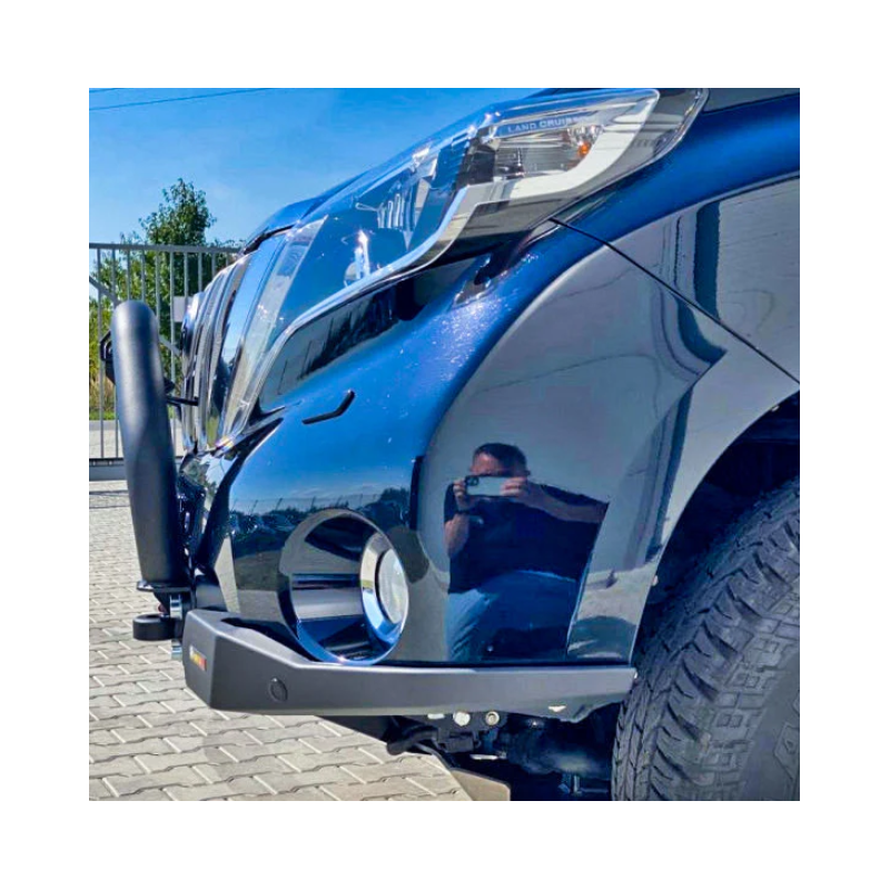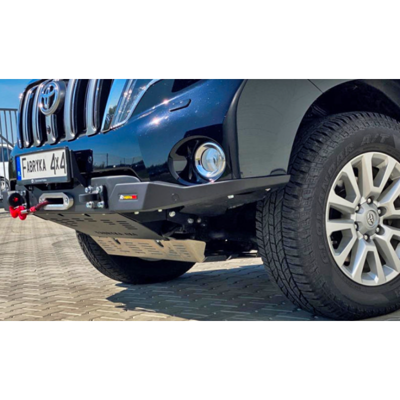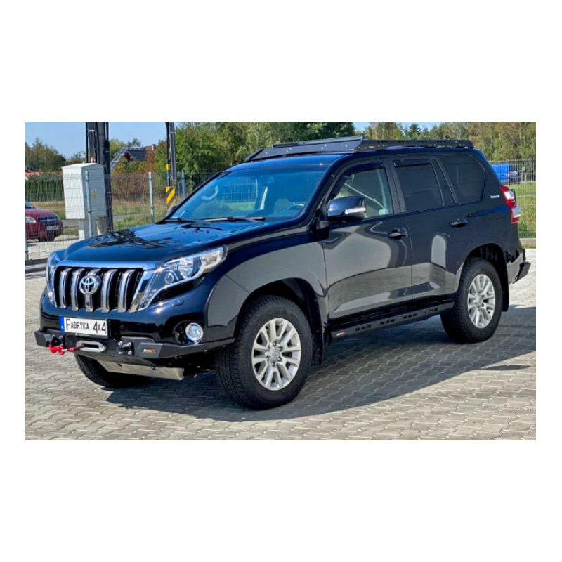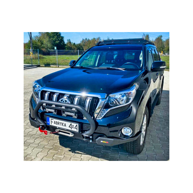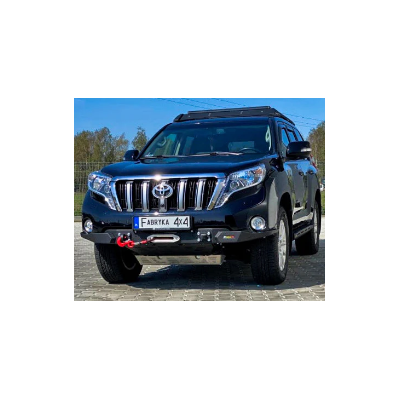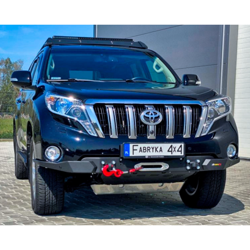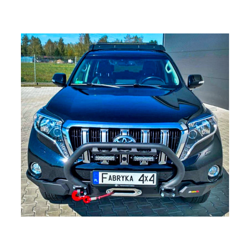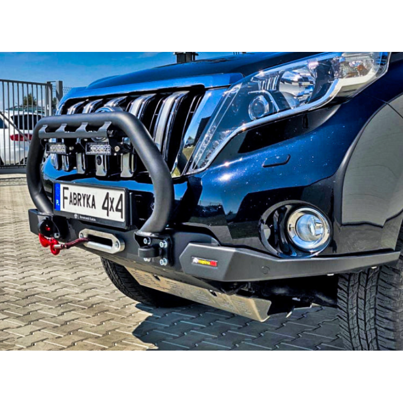 Metal (steel) front bumper Slim with winch mounting plate for Toyota Land Cruiser Prado J150, J155 (can be adapted for Lexus GX 460) 2013-2017 (1st facelift). The bumper can be ordered with a screw-on bull bar.