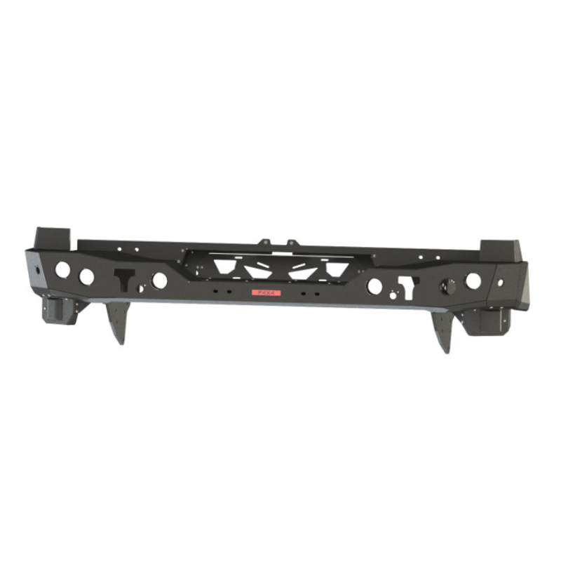 The bumper has openings on both corners for attaching swing-out carrier arms (ordered separately).