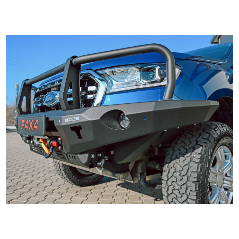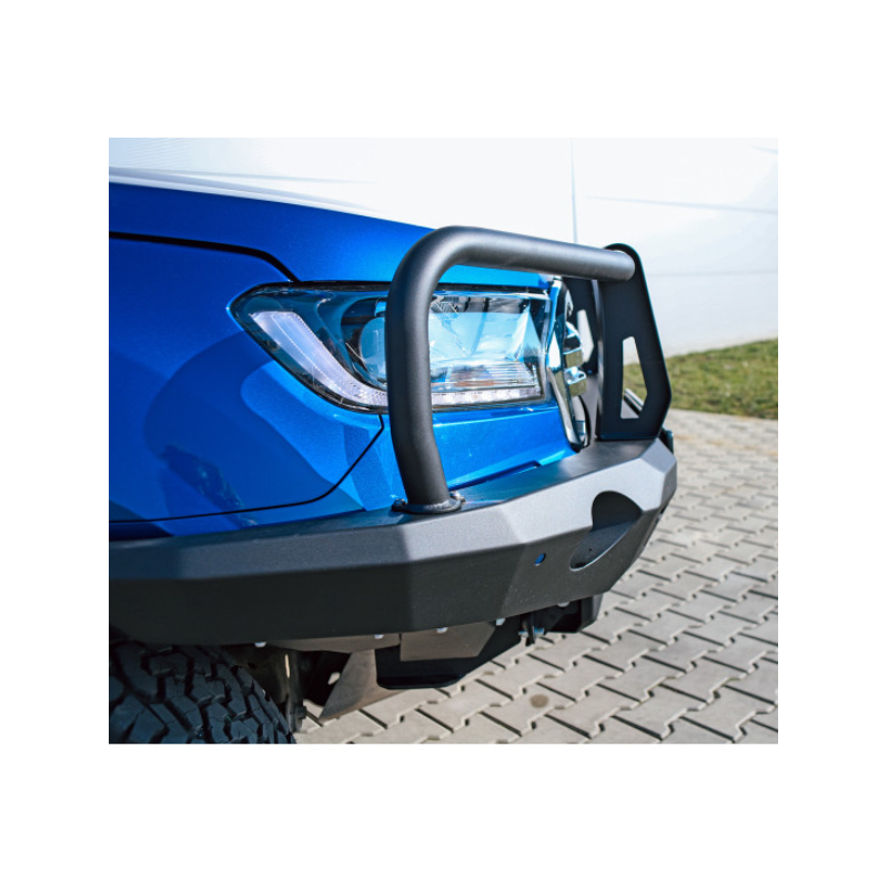 Metal (steel) front bumper with winch mounting plate for Ford Ranger T8/PX3 2019-2022. The bumper can be ordered with a screw-on bull bar.