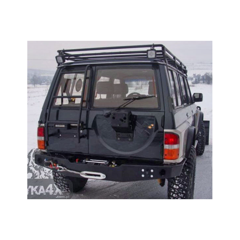 Metal (steel) rear bumper with winch mounting plate for Nissan Patrol Y60 1989-1998. To install this bumper, you need to cut the lower part of the rear fenders.