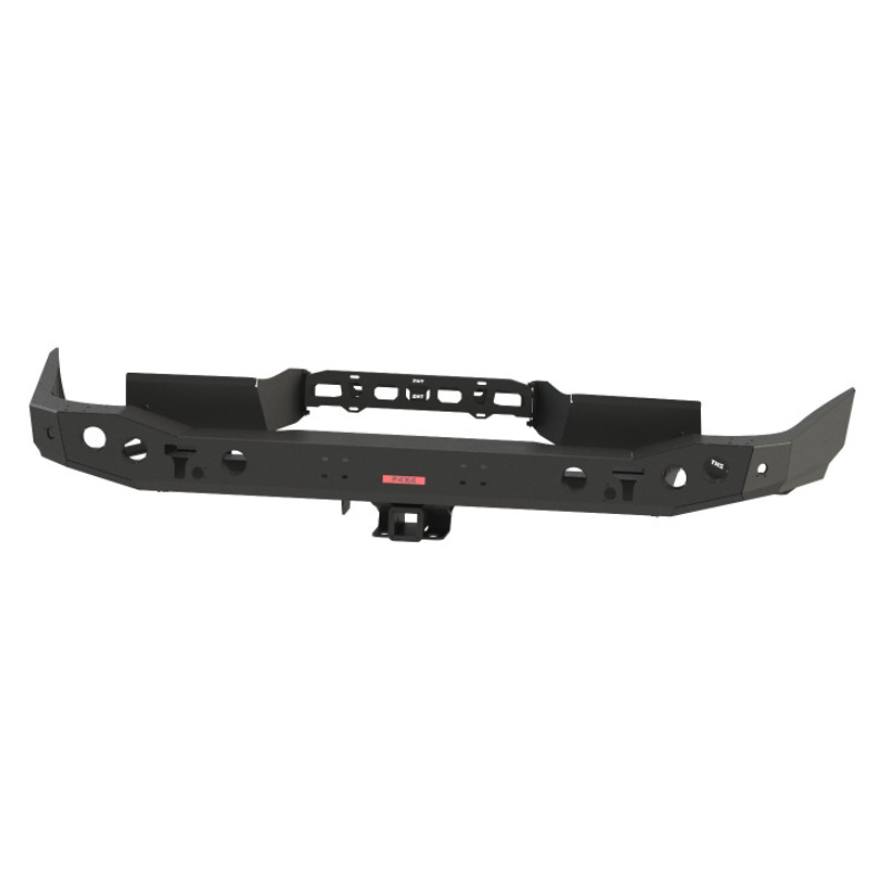 The bumper has openings on both corners for attaching swing-out carrier arms (ordered separately).