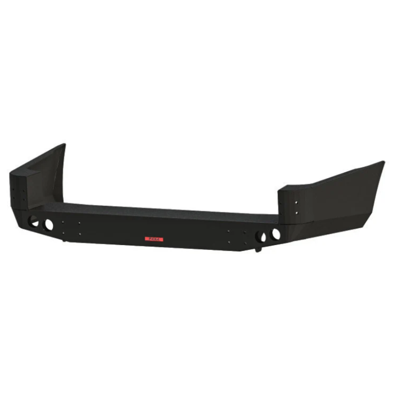 The bumper has openings on both corners for attaching swing-out carrier arms (ordered separately).