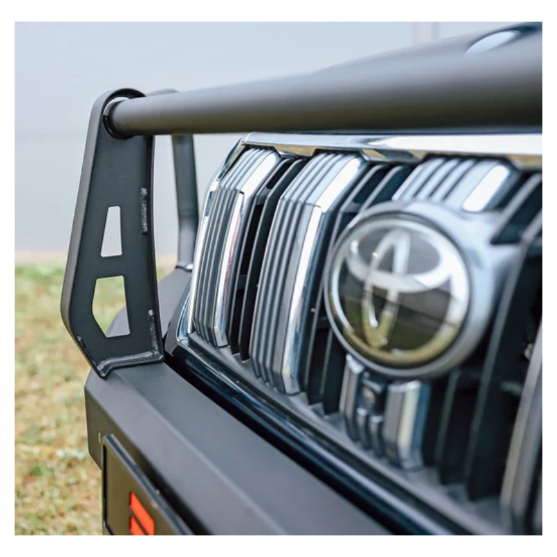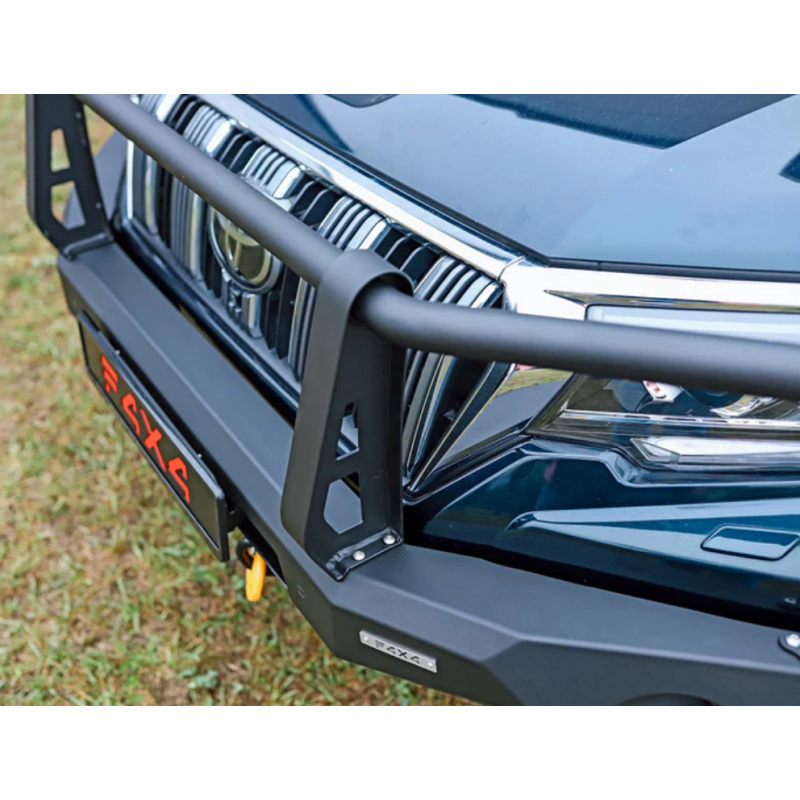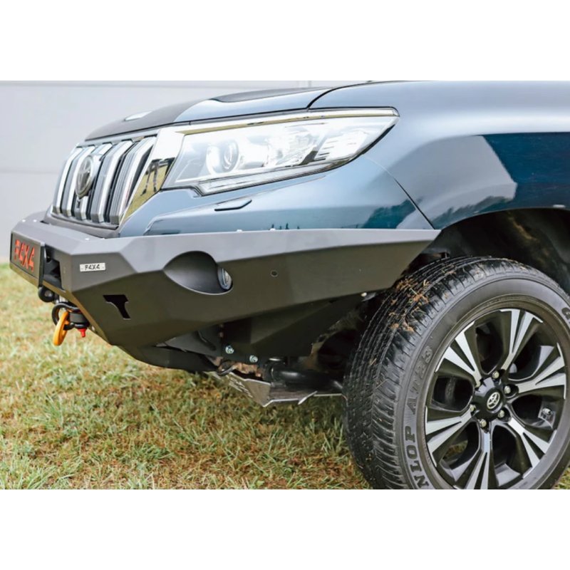 Metal (steel) front bumper with winch mounting plate for Toyota Land Cruiser Prado J150, J155 (adaptable for Lexus GX 460) 2017-2023 (2nd facelift). The bumper can be ordered with a screw-on bull bar.