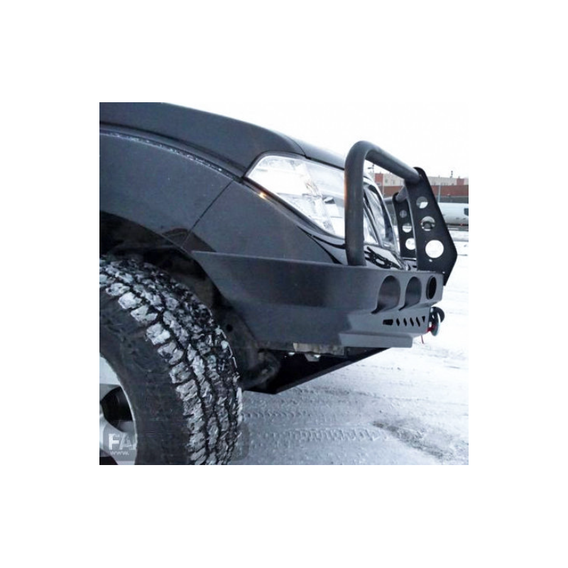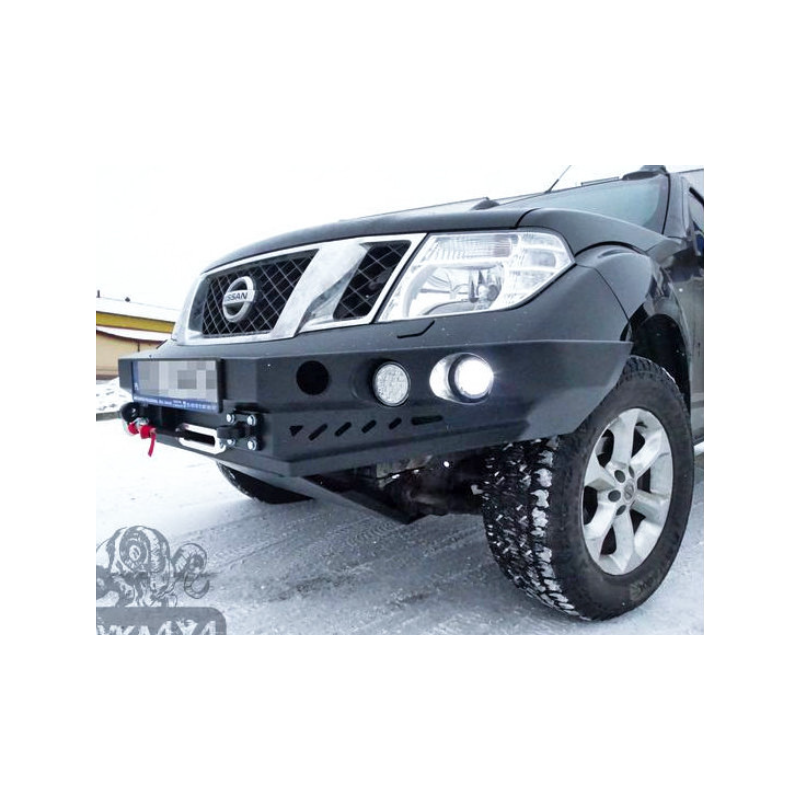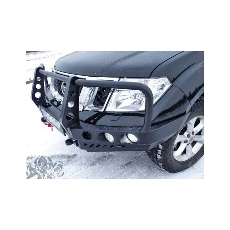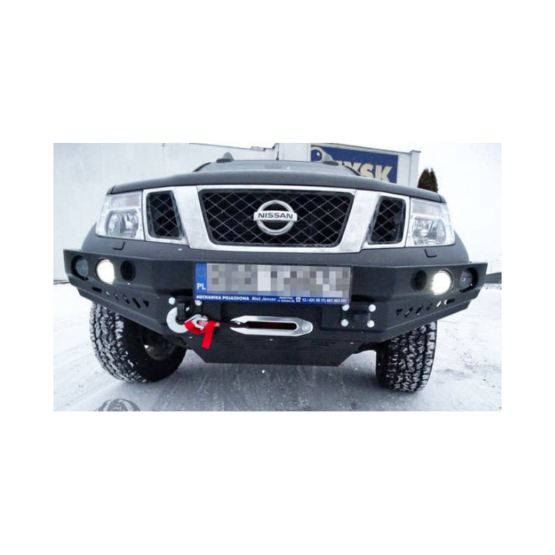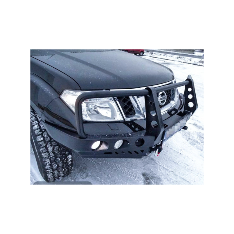 Metal (steel) front bumper with winch mounting plate for Nissan Navara/NP300/PickUp/Frontier D40 2010-2014 (facelift). The bumper can be ordered with a screw-on bull bar.