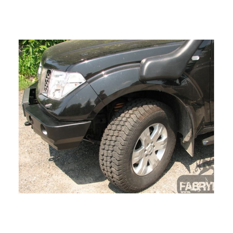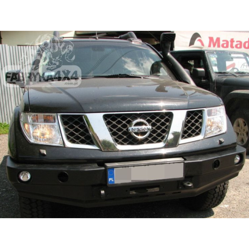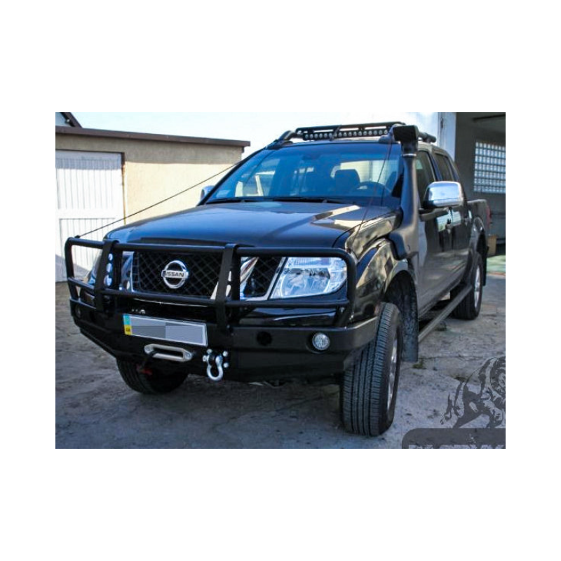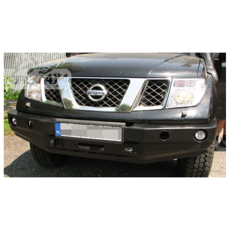 Metal (steel) front bumper with winch mounting plate for Nissan Navara/NP300/PickUp/Frontier D40, Pathfinder R51 2005-2010 (pre-facelift). The bumper can be ordered with a screw-on bull bar.