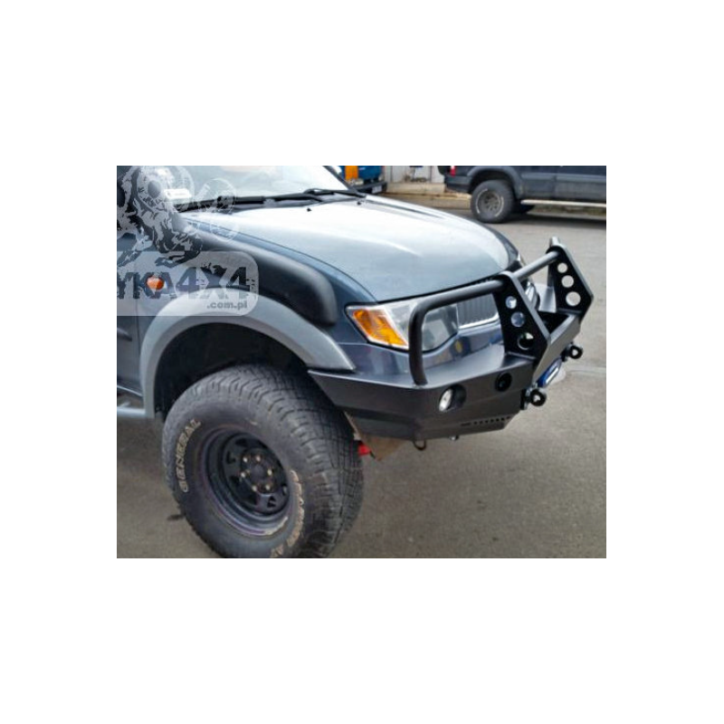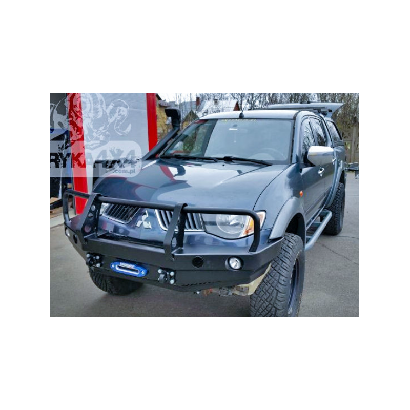Metal (steel) front bumper with winch mounting plate for Mitsubishi Triton L200 KA/KB 2005-2010 (prefacelift). The bumper can be ordered with a screw-on bull bar.