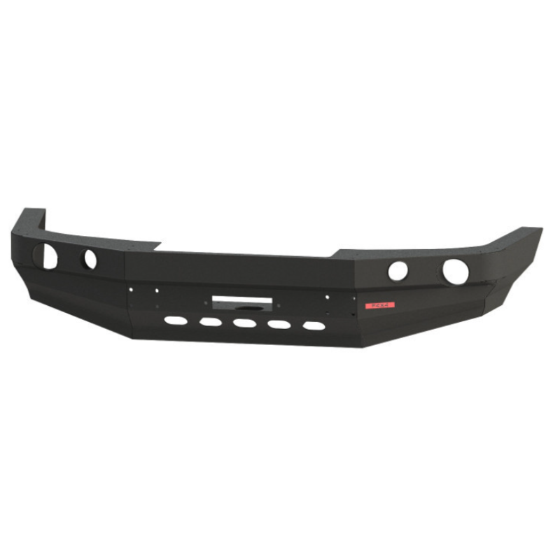 The bumper has openings for attaching a Hi-Lift jack, mounting holes for towing eyes and openings for additional daytime running lights (DRL) or fog lights (towing eyes and lights can be included for additional cost).