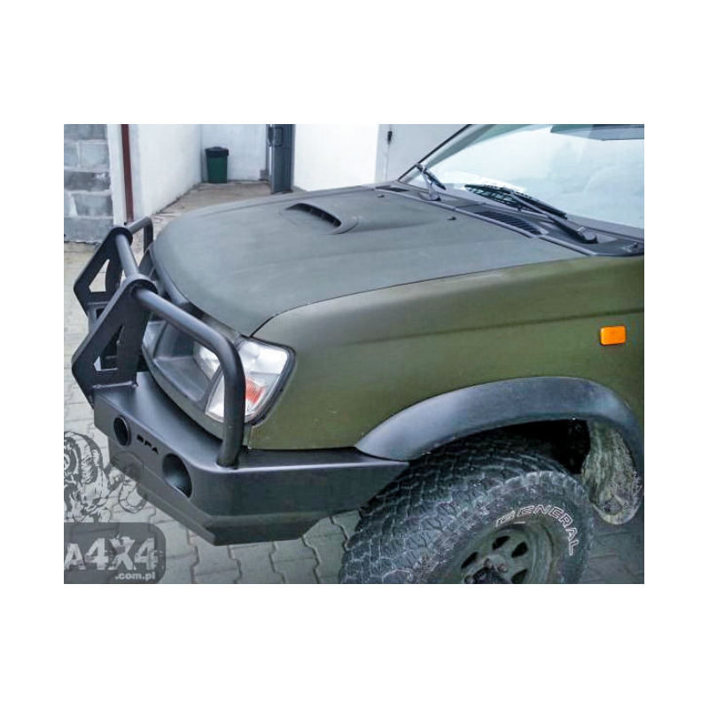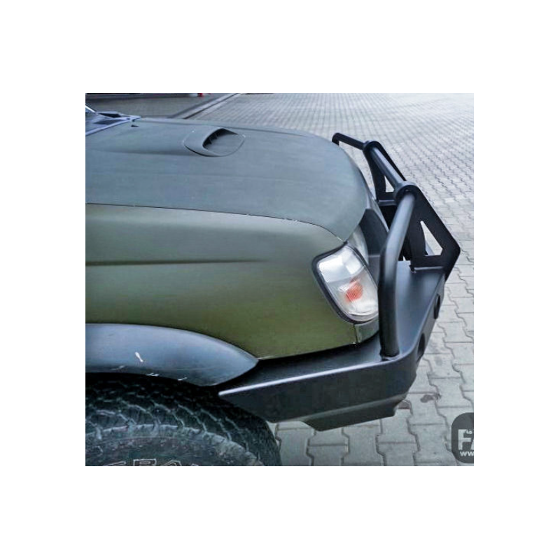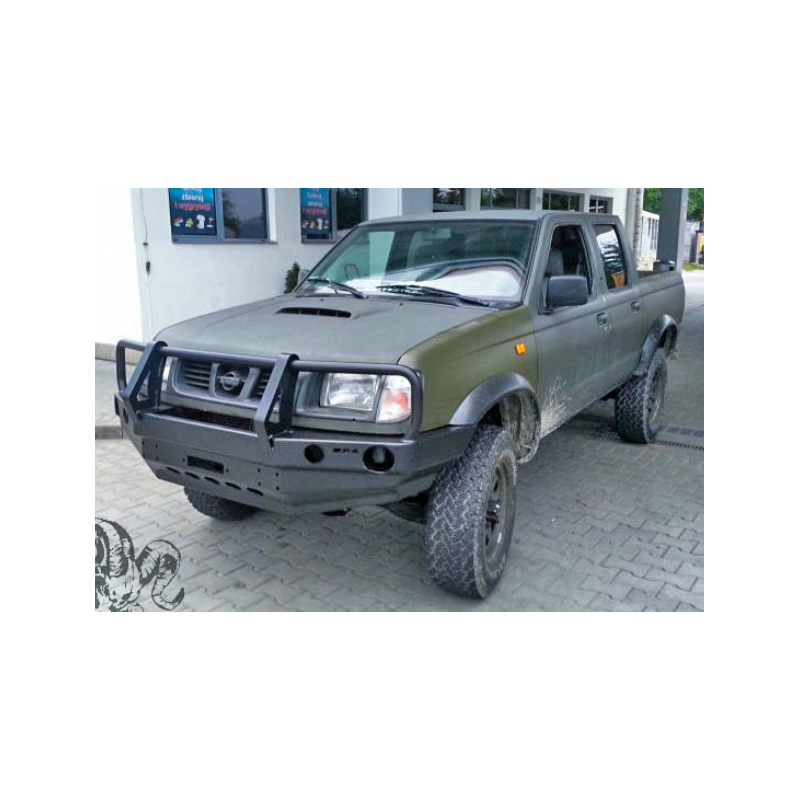 Metal (steel) front bumper with winch mounting plate for Nissan Navara/NP300/PickUp/Hardbody D22 1997-2000 (pre-facelift). The bumper can be ordered with a screw-on bull bar.