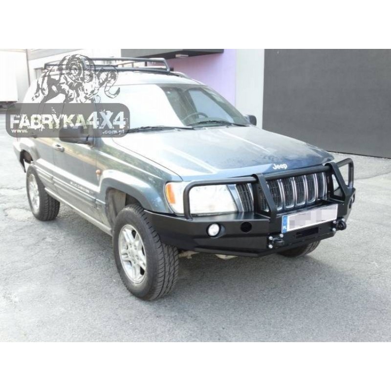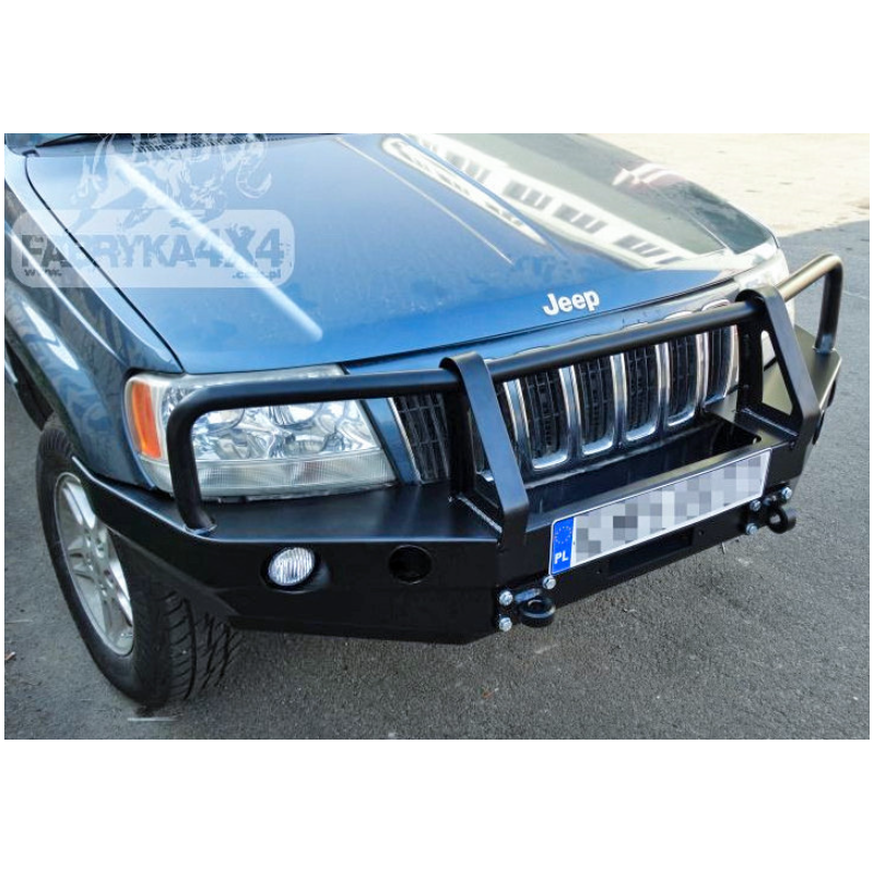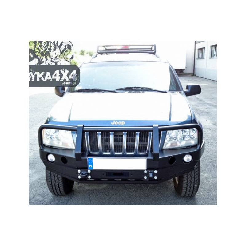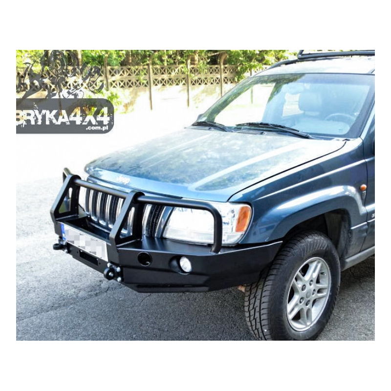 Metal (steel) front bumper with winch mounting plate for Jeep Grand Cherokee WJ/WG 1998-2005. The bumper can be ordered with a screw-on bull bar.