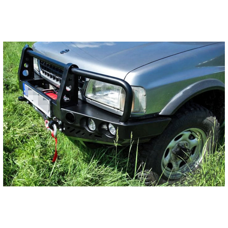 Metal (steel) front bumper with winch mounting plate for Opel Frontera A 1989-1998. The bumper can be ordered with a screw-on bull bar.