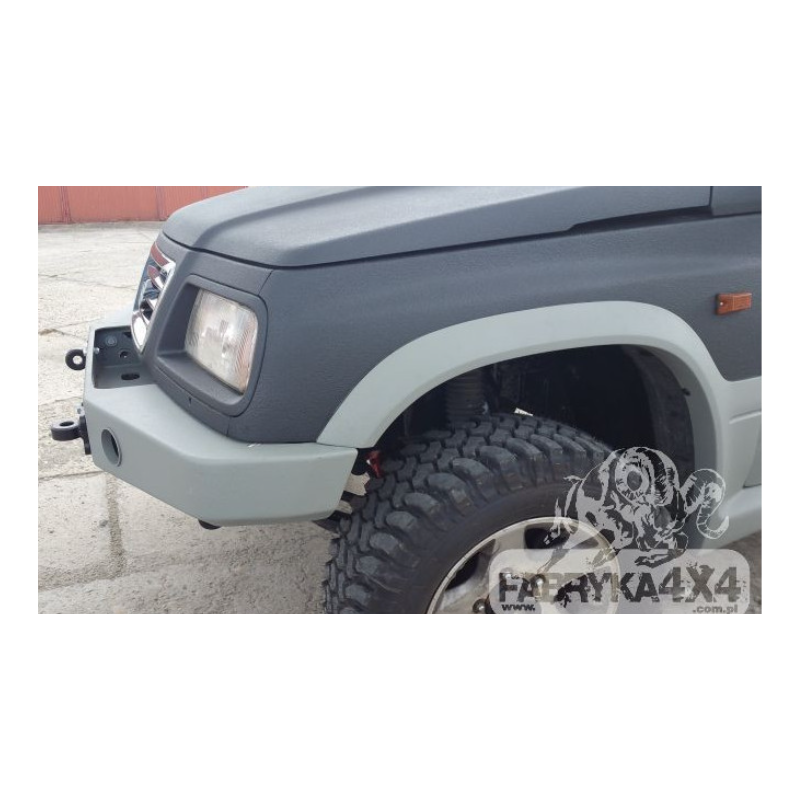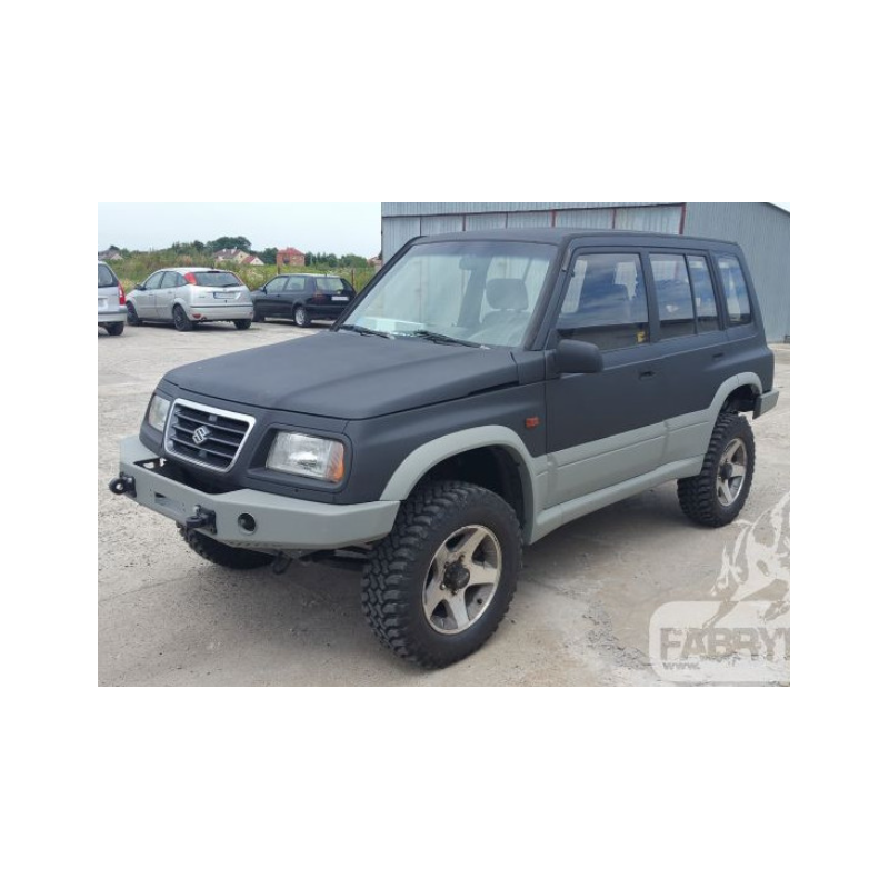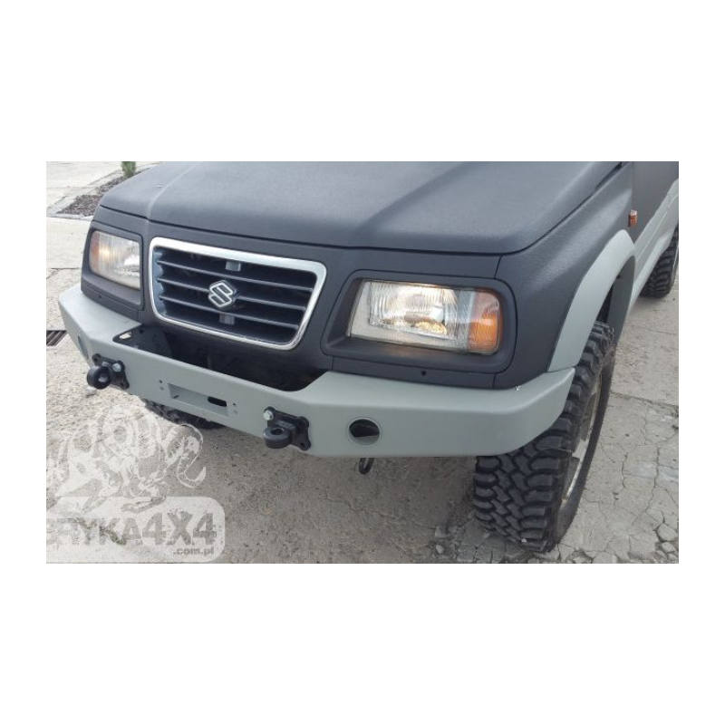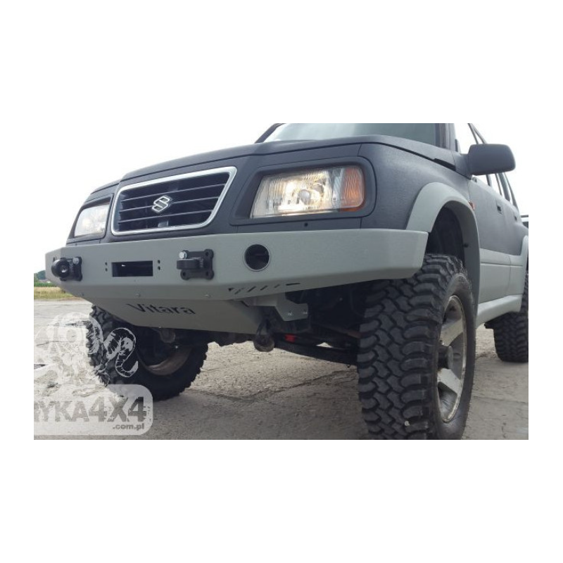 Metal (steel) front bumper with winch mounting plate for Suzuki Vitara ET/TA 2.0 V6 1988-1999. The bumper can be ordered with a screw-on bull bar.