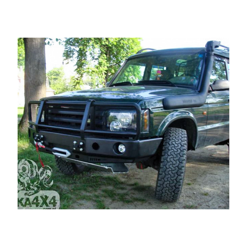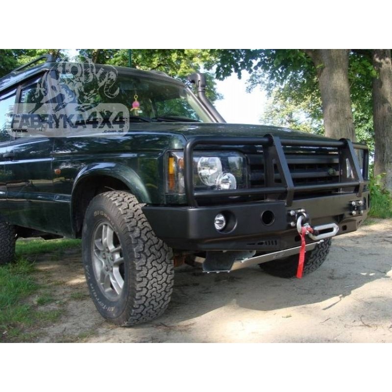 Metal (steel) front bumper with winch mounting plate for Land Rover Discovery Series II L318 1998-2004. The bumper can be ordered with a screw-on bull bar.