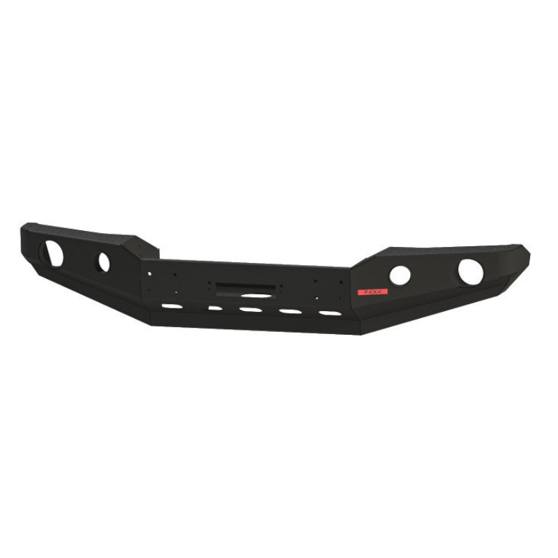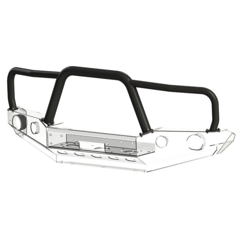 The bumper has openings for attaching a Hi-Lift jack, mounting holes for towing eyes and openings for additional daytime running lights (DRL) or fog lights (towing eyes and lights can be included for additional cost).