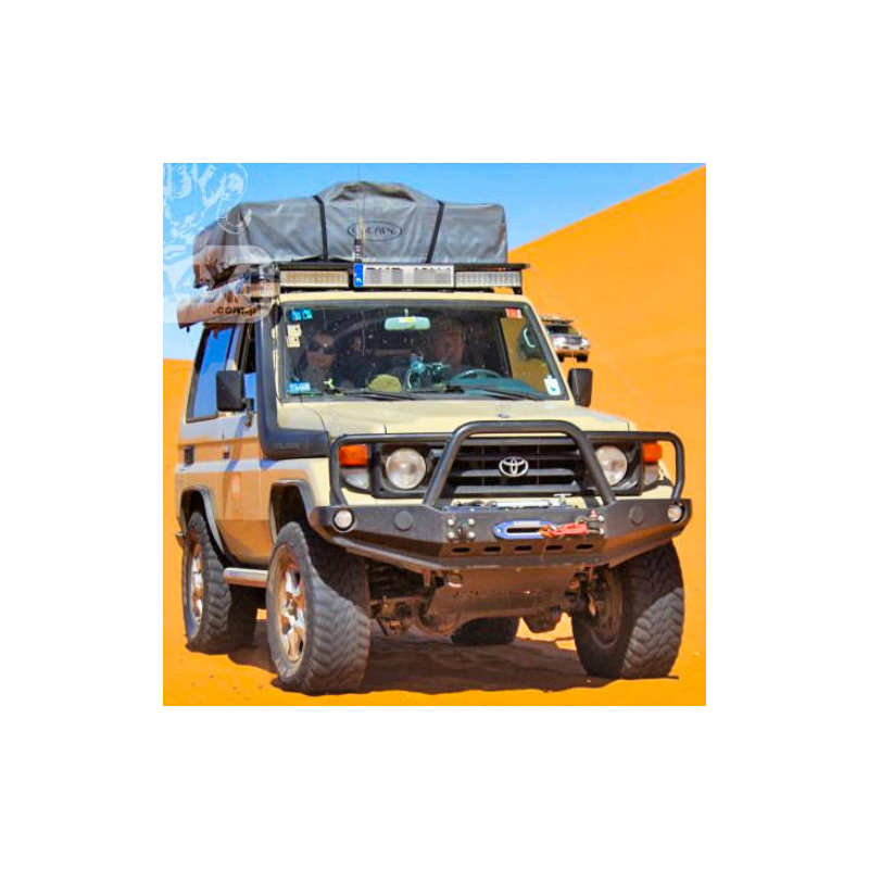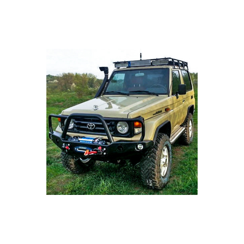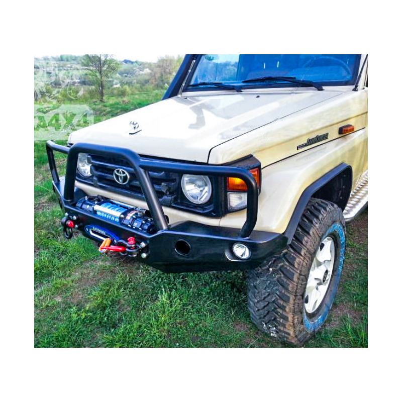 Metal (steel) front bumper with winch mounting plate for Toyota Land Cruiser HZJ 71 1999-2007. The bumper can be ordered with a screw-on bull bar.