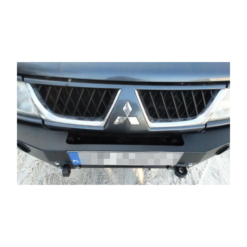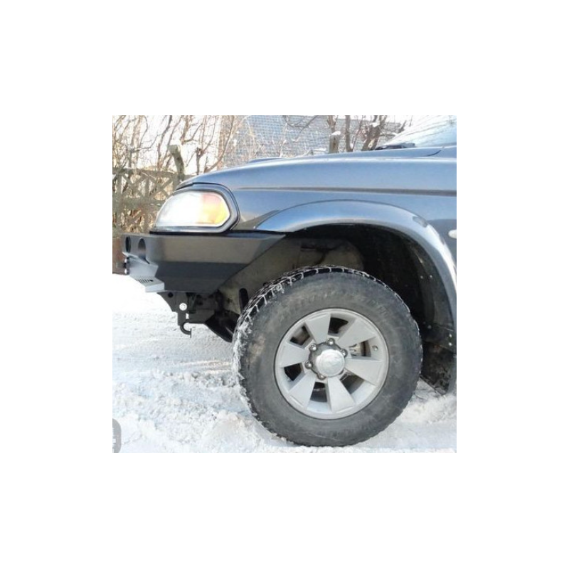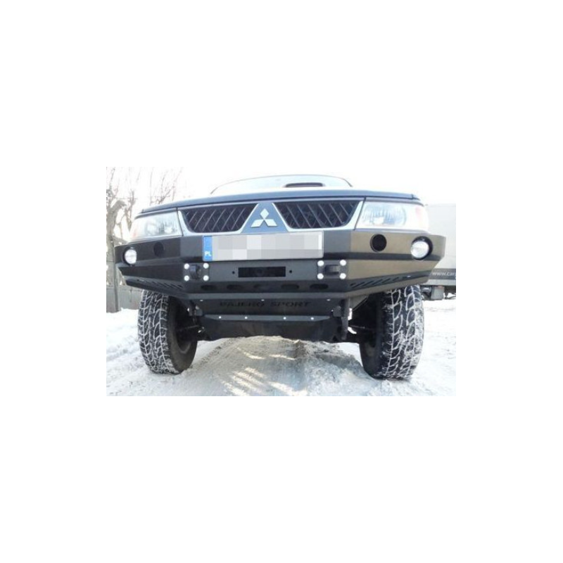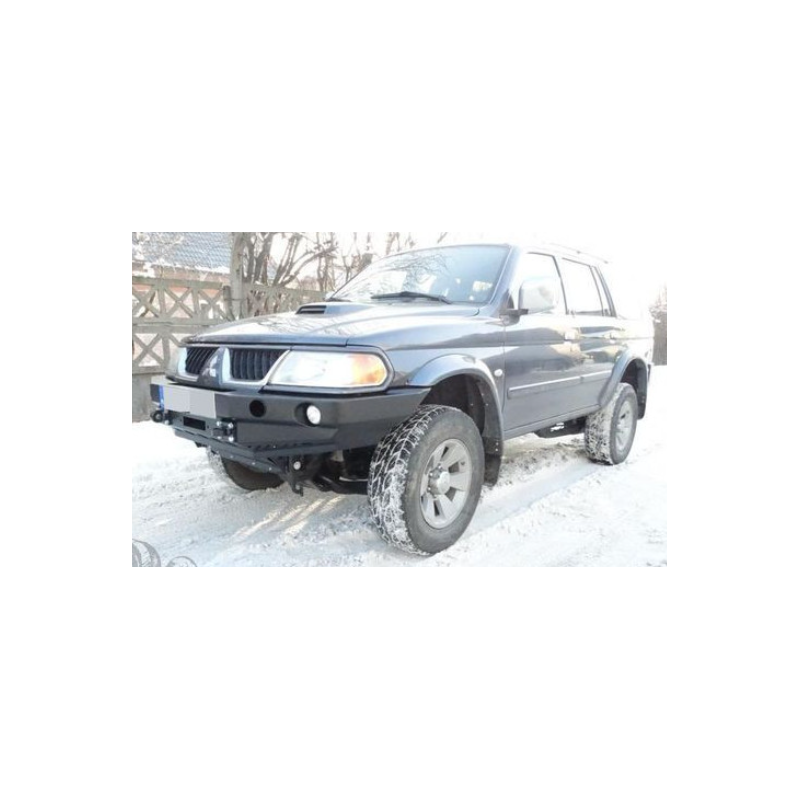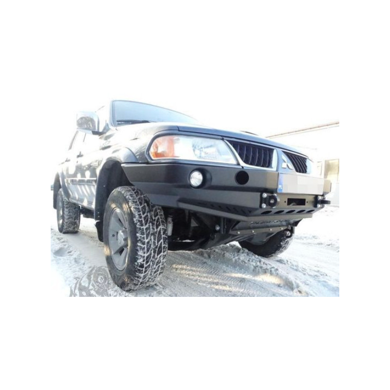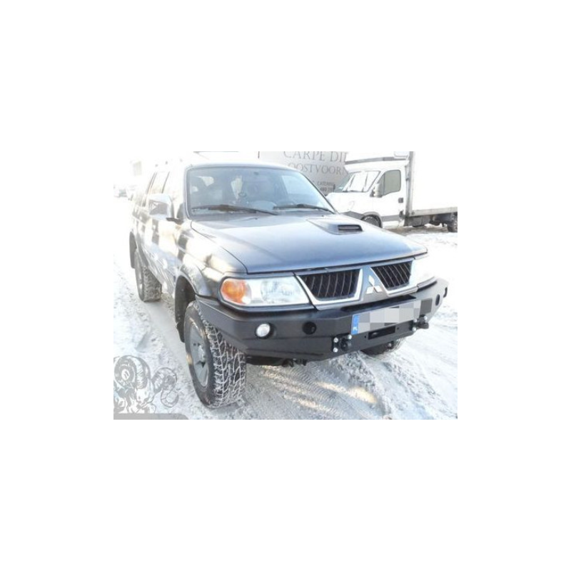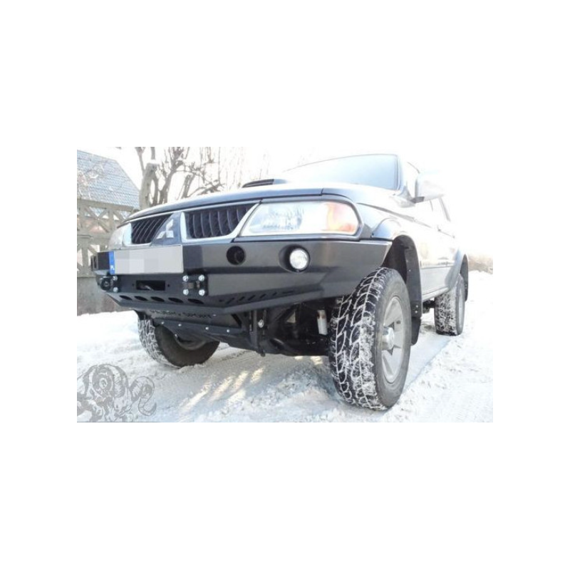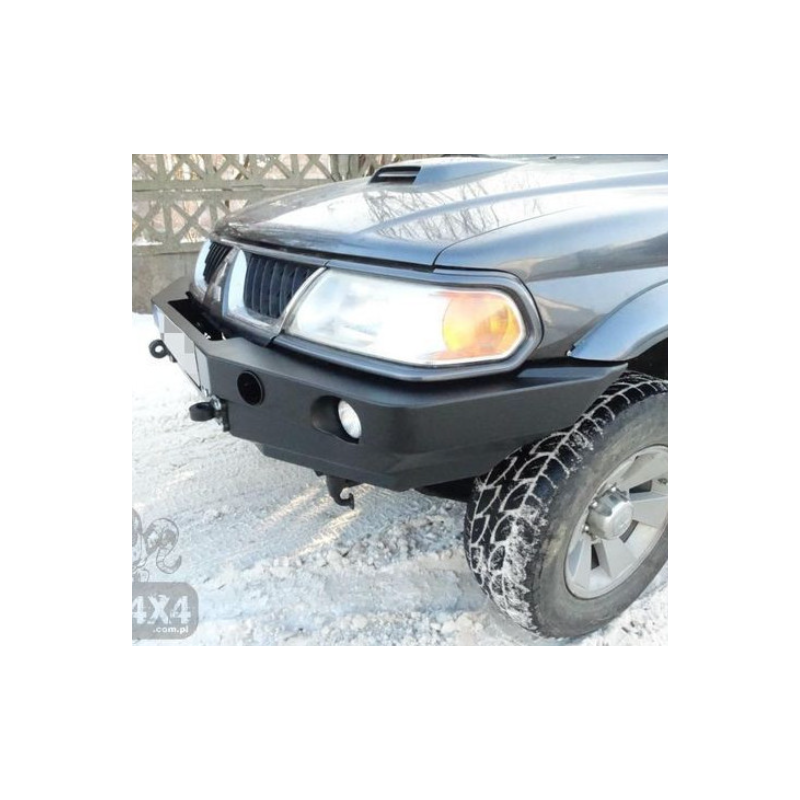 Metal (steel) front bumper with winch mounting plate for Mitsubishi Pajero/Montero/Shogun Sport I K80/K90 2000-2008. The bumper can be ordered with a screw-on bull bar.