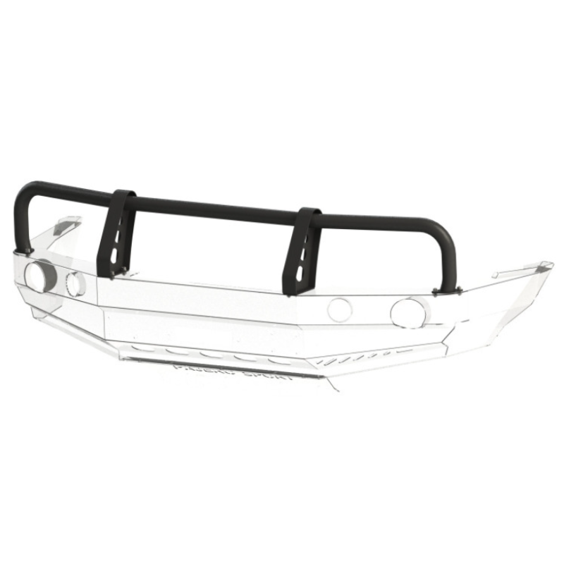 The bumper has openings for attaching a Hi-Lift jack, mounting holes for towing eyes and openings for additional daytime running lights (DRL) or fog lights (towing eyes and lights can be included for additional cost).