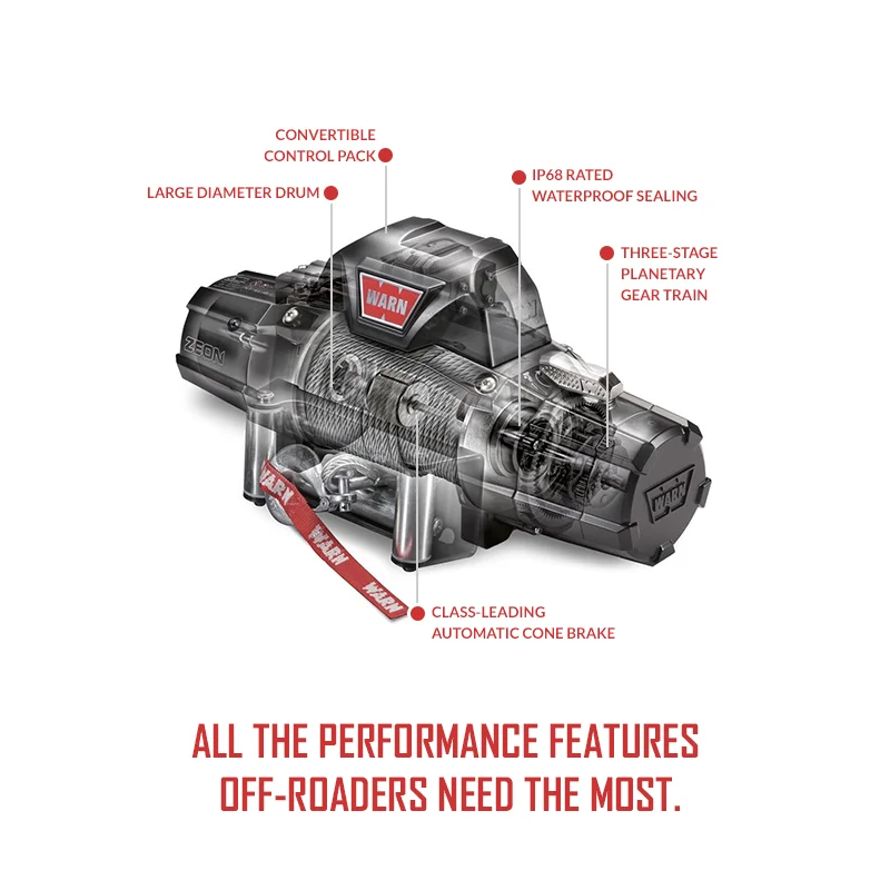 The Warn Zeon 12-S (12000 lbs) is a product of the most famous winch brand from the USA. Solid, robust construction with a modern motor and IP68 protection standard ensures that this winch will not let you down in challenging situations. The winch has been tested in competitions and extremely tough off-road raids. Successfully used in special applications.