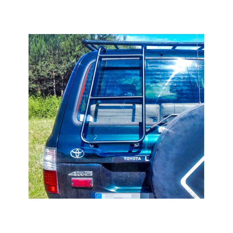Ladder for Toyota Land Cruiser 80, Lexus LX 450 1990-1997. The ladder helps you quickly and conveniently climb onto the roof rack of your vehicle. The ladder is attached to the trunk door and screwed in at the bottom.
