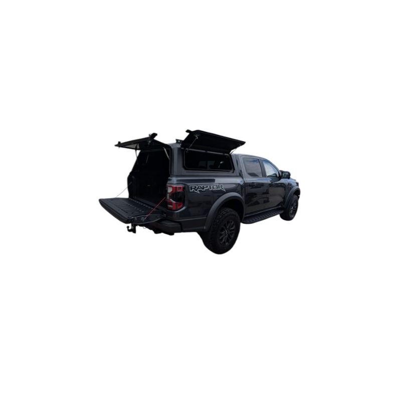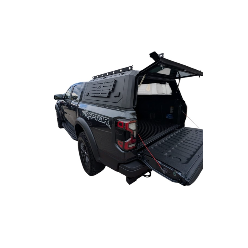 Pickup truck bed hardtop canopy for Ford Ranger T9 P703/RA Double Cab (SuperCrew/Crew Cab) 2022-. This hardtop is the perfect solution for outdoor adventure enthusiasts and workers who need reliable and functional equipment. With its sturdy construction and numerous features, the hardtop enhances your safety and driving comfort in any terrain. Unlike composite structures, this hardtop is exceptionally durable and resistant to loads.