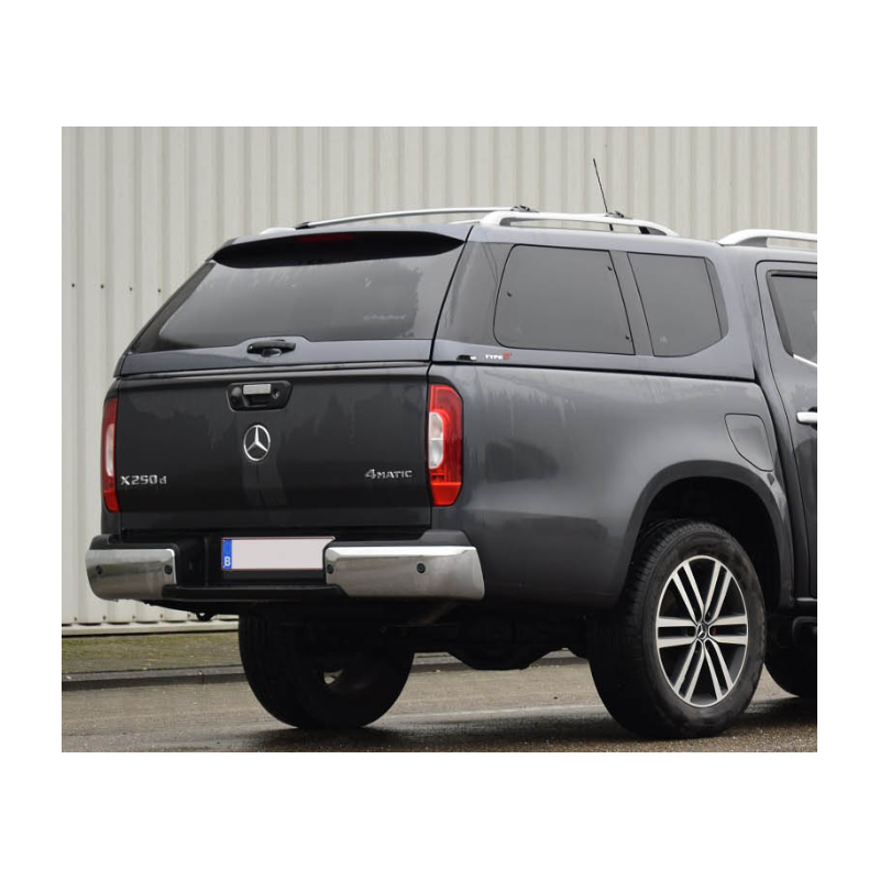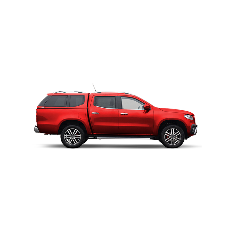 Pickup truck bed hardtop canopy Alpha Type E+ for Mercedes-Benz X-Class W470. This hardtop is the perfect solution for outdoor adventure enthusiasts and workers who need reliable and functional equipment. Due to the single-shell construction, this hardtop is extremely stable in relation to its weight.