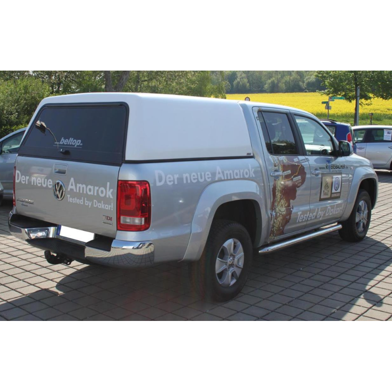 Pickup truck bed hardtop canopy for Volkswagen Amarok I 2H/Typ 2F Double Cab 2010-2022. This hardtop is the perfect solution for outdoor adventure enthusiasts and workers who need reliable and functional equipment. Due to the single-shell construction, this hardtop is extremely stable in relation to its weight.