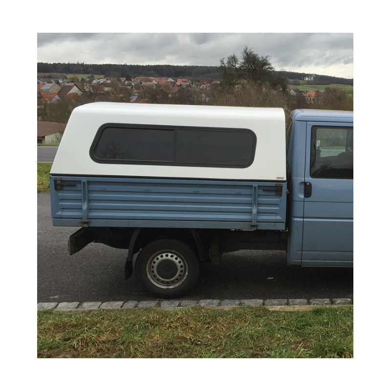 Pickup truck bed hardtop canopy for Volkswagen Transporter T4 Pickup Double Cab 1990-2005. This hardtop is the perfect solution for outdoor adventure enthusiasts and workers who need reliable and functional equipment. Due to the single-shell construction, this hardtop is extremely stable in relation to its weight.
