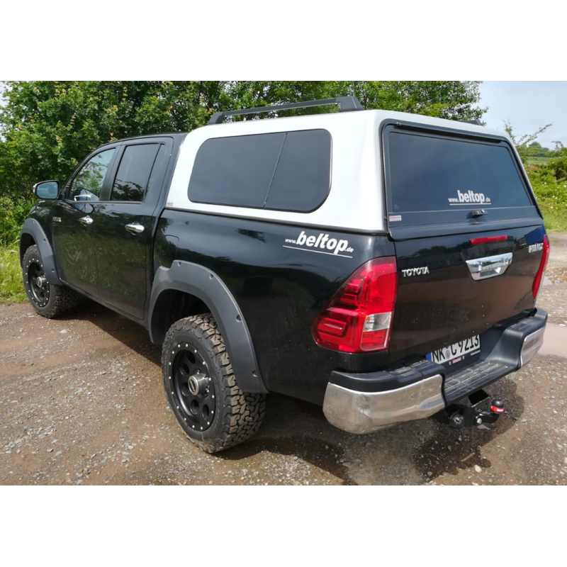 Pickup truck bed hardtop canopy for Toyota Hilux Revo VIII AN110/AN120/AN130 Double Cab 2015-. This hardtop is the perfect solution for outdoor adventure enthusiasts and workers who need reliable and functional equipment. Due to the single-shell construction, this hardtop is extremely stable in relation to its weight.