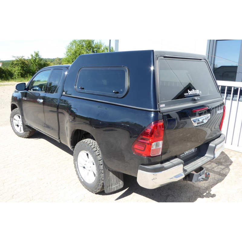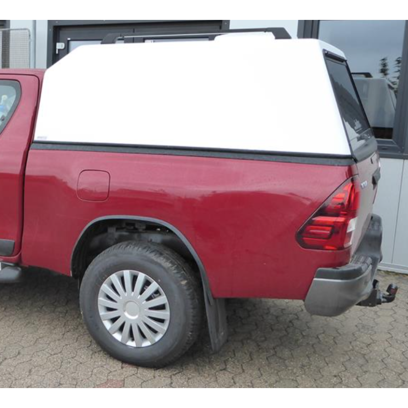 Pickup truck bed hardtop canopy for Toyota Hilux Revo VIII AN110/AN120/AN130 Extended Cab (Extra Cab) 2015-. This hardtop is the perfect solution for outdoor adventure enthusiasts and workers who need reliable and functional equipment. Due to the single-shell construction, this hardtop is extremely stable in relation to its weight.