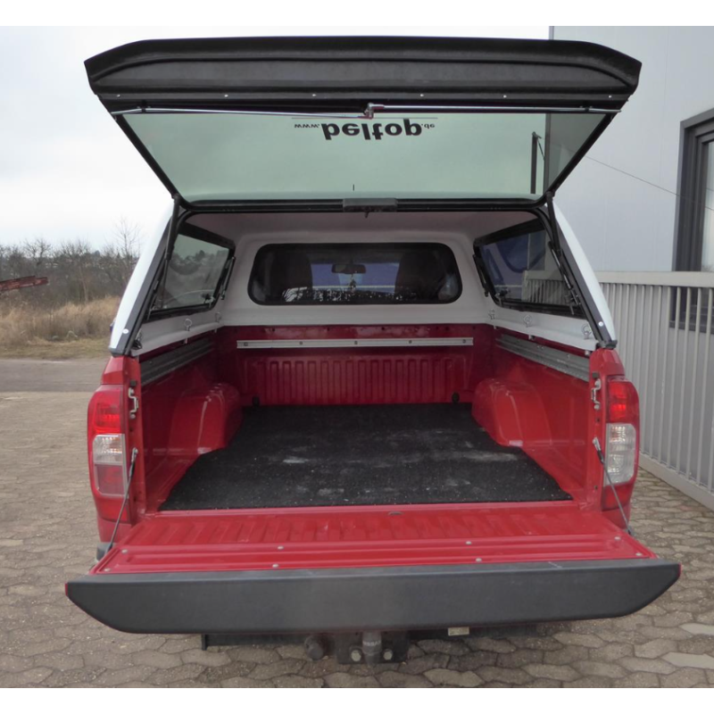 Pickup truck bed hardtop canopy for Nissan Navara/NP300 IV D23 King Cab (Extended Cab) 2015-2021. This hardtop is the perfect solution for outdoor adventure enthusiasts and workers who need reliable and functional equipment. Due to the single-shell construction, this hardtop is extremely stable in relation to its weight.