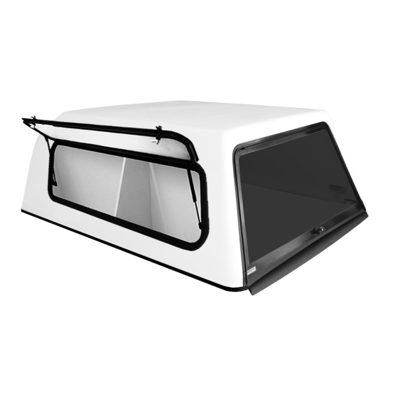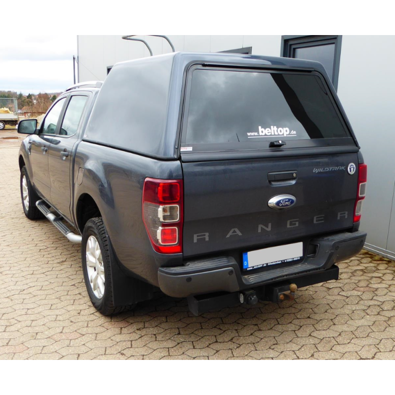 Pickup truck bed hardtop canopy for Ford Ranger III P375 T6/T7/T8 PX1/PX2/PX3 Double Cab (Crew Cab) 2011-2022 (XL, XLT, Limited, Wildtrak, Raptor, Thunder, Black Edition). This hardtop is the perfect solution for outdoor adventure enthusiasts and workers who need reliable and functional equipment. Due to the single-shell construction, this hardtop is extremely stable in relation to its weight.