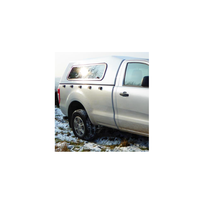 Pickup truck bed hardtop canopy for Ford Ranger III P375 T6/T7/T8 PX1/PX2/PX3 Single Cab (Regular Cab) 2011-2022 (XL, XLT, Limited, Wildtrak, Thunder, Black Edition). This hardtop is the perfect solution for outdoor adventure enthusiasts and workers who need reliable and functional equipment. Due to the single-shell construction, this hardtop is extremely stable in relation to its weight.