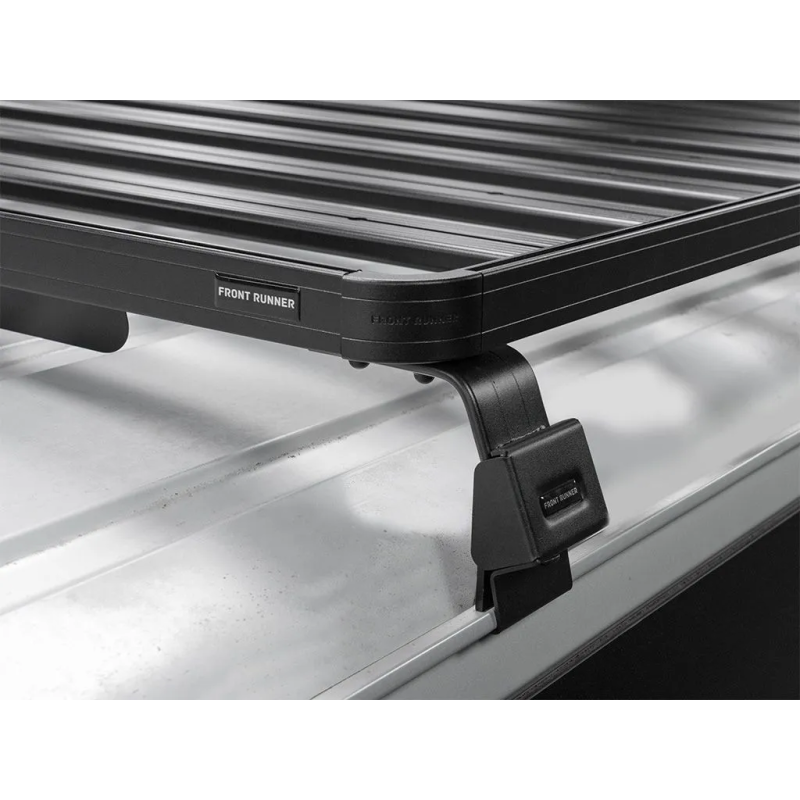 Roof rack is made from black epoxy powder coated T6 aluminum profiles (slats) and high strength steel. The roof rack can be equipped with various Front Runner brackets for attaching items to the top or sides of the roof rack (ordered separately). It is also possible to attach other various brackets or objects to the slats with 8 mm bolts.