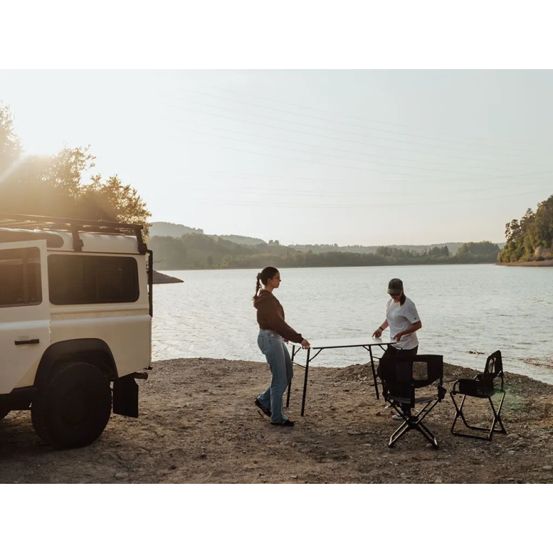 The vehicle specific foot rails have openings for storing compatible gear under the rack such as Front Runner tables.