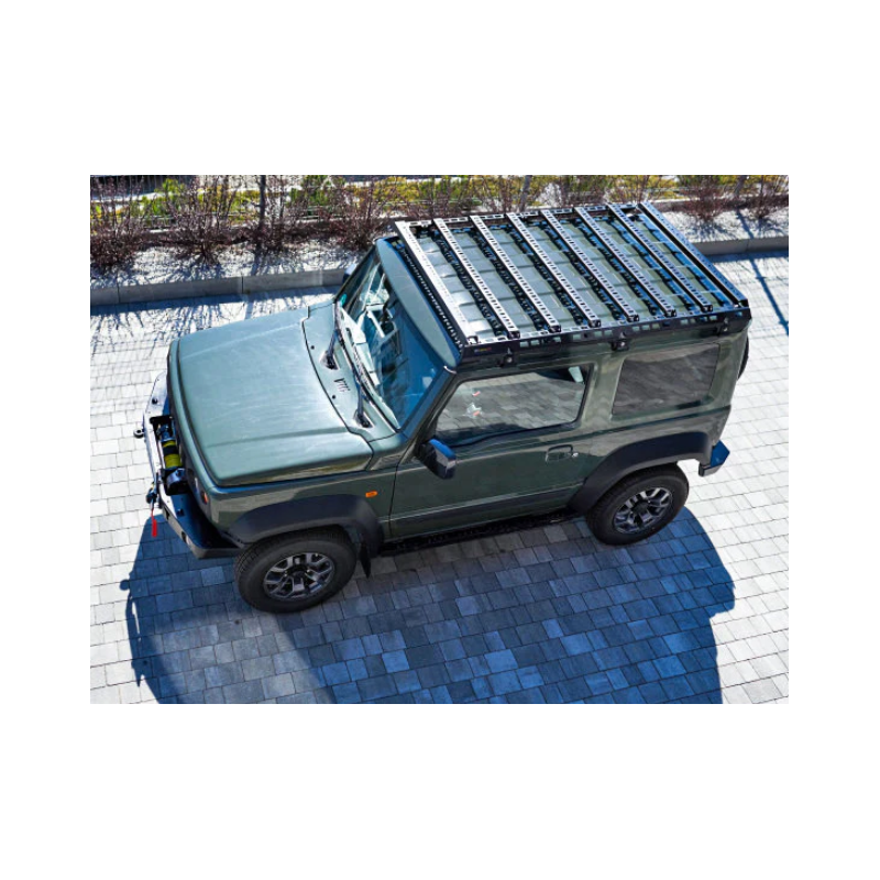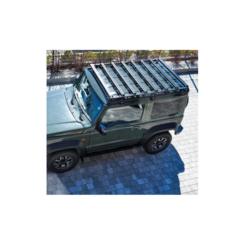 Roof Rack for Suzuki Jimny IV JB74W 2018-. Designed for transporting various light and heavy luggage, overlanding, expeditions or setting up a hunting platform by installing a plywood or aluminium floor.