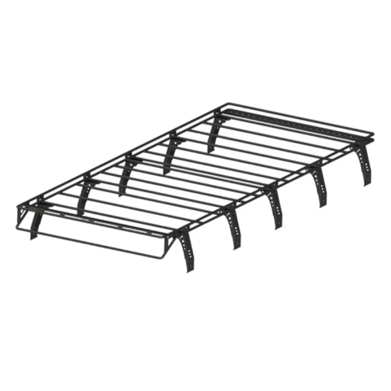 Roof Rack for Mercedes-Benz Sprinter W903 1995-2006. Designed for transporting various light and heavy luggage, overlanding, expeditions or setting up a hunting platform by installing a plywood or aluminium floor. The roof rack has mounting spaces for vehicle registration plates and additional lights (front, sides, rear). Lights are ordered separately.