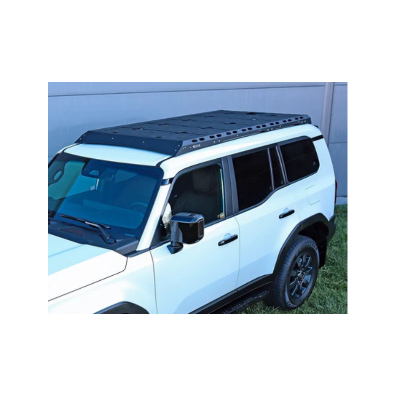 Roof Rack for Toyota Land Cruiser Prado J250, Lexus GX 550 2023-. Designed for transporting various light and heavy luggage, overlanding, expeditions or setting up a hunting platform by installing a plywood or aluminium floor. The roof rack has a mounting space for LED bar light in the front (LED bar is ordered separately).