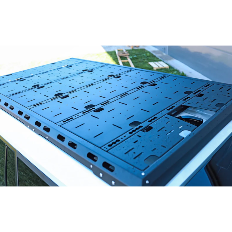 All mounting elements are included. Roof rack can be bundled with perforated aluminum panels, which can be mounted in the spaces between roof rack crossbars to create floor with a flat surface.