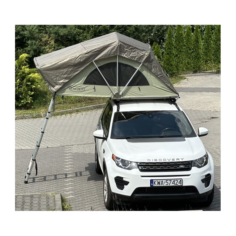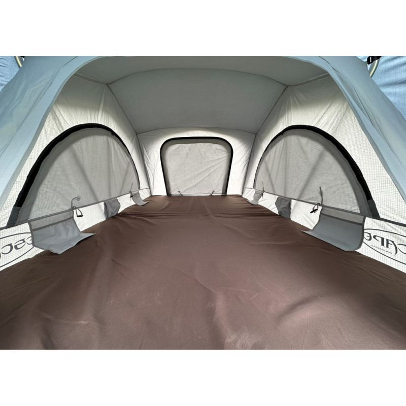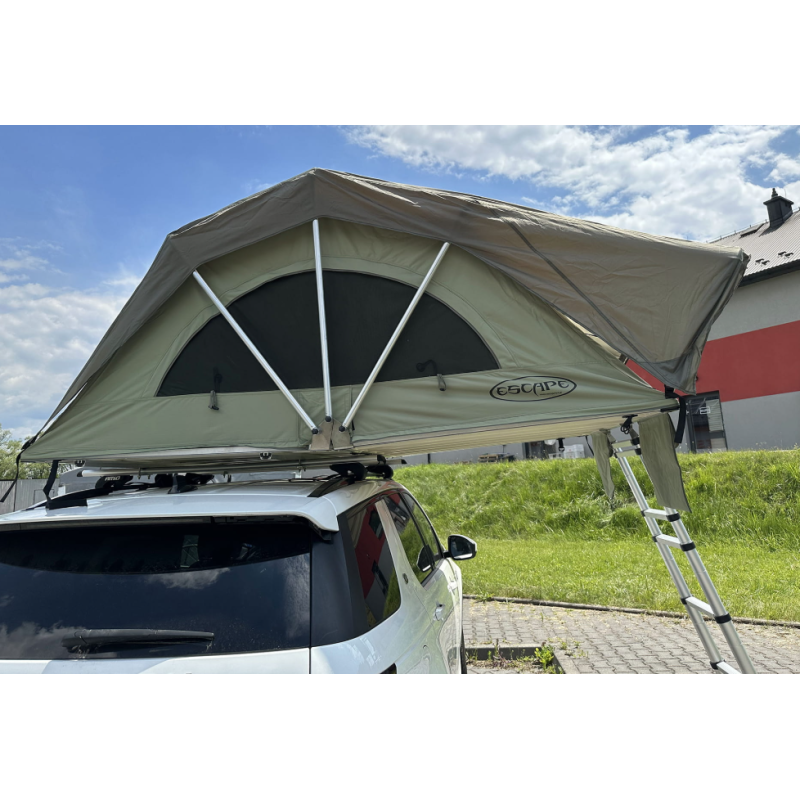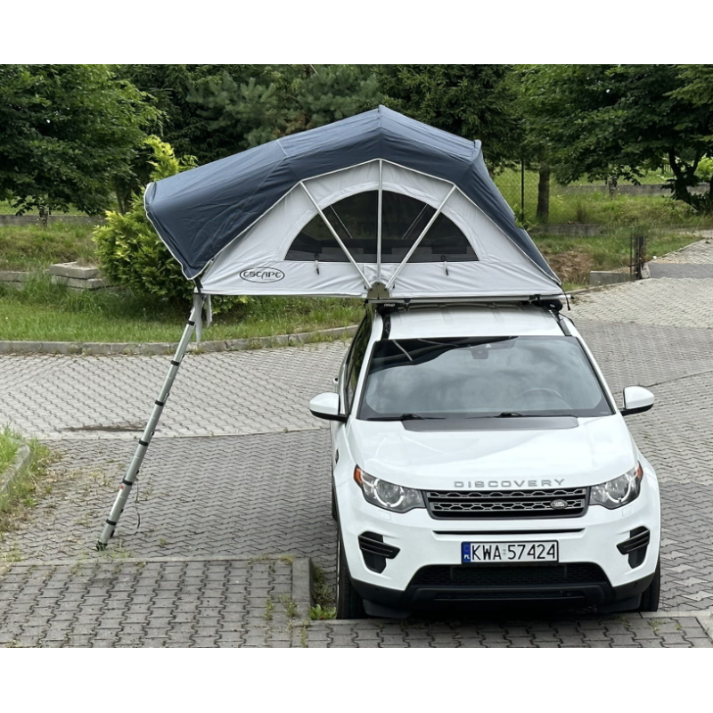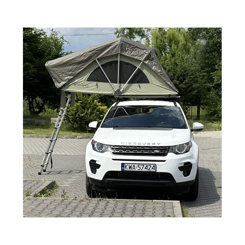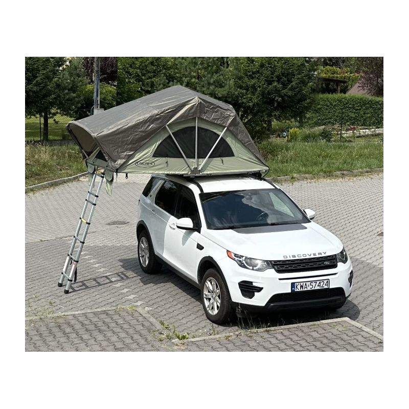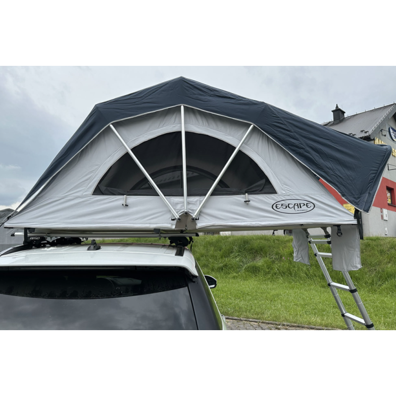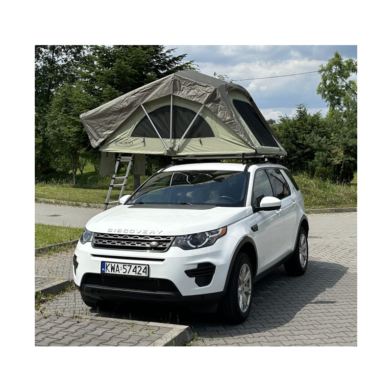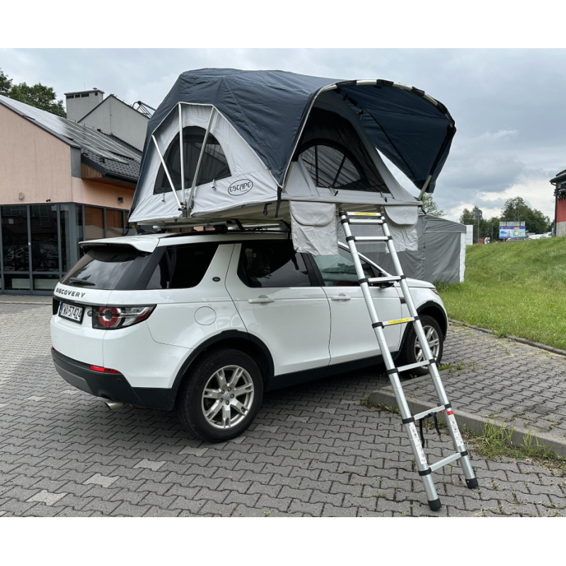 Rooftop tent Arizona II 190 (5 people) is designed to be installed on car roof racks or railings. Tent's flysheet is made of Oxford 420D polyester and 280D polyester, ensuring it's water resistance. 70 mm thick cotton coated mattress is filled with high density foam. Mosquito nets are placed inside the tent. The two-ply tent floor is made of aluminium, ferrules and screws which are made of stainless steel. The weather skirt, waterproof dust-protecting cover and aluminium adjustable ladder are included.