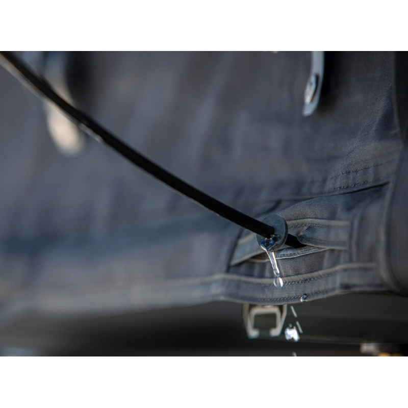 The tent can be mounted not only on SUVs and pickups, but also on other cars or trailers, choosing the direction of unfolding that is convenient for you. The side windows open fully for excellent ventilation. The high-opening design makes it convenient to sit and change clothes, and the sturdy construction can withstand harsh conditions. Tested and proven in hot Africa and cold Scandinavia, and, of course in the Lithuanian climate.