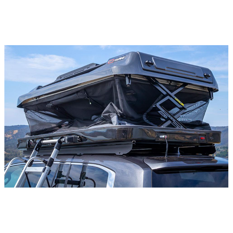 A load capacity of 20 kg allows a multitude of carrying options without scarifying functionality. The Altitude also accommodates the attachment of a crossbar kit further increasing the options of accessories and cargo that can be carried. For additional power, the purpose-engineered 120W solar panel accessory kit, installed on the Altitude’s roof, provides peace of mind when heading off grid. The best bit is that the actuators can support 20 kg to open even whilst loaded, meaning the surfboard or skis don’t have to come off to jump into bed.