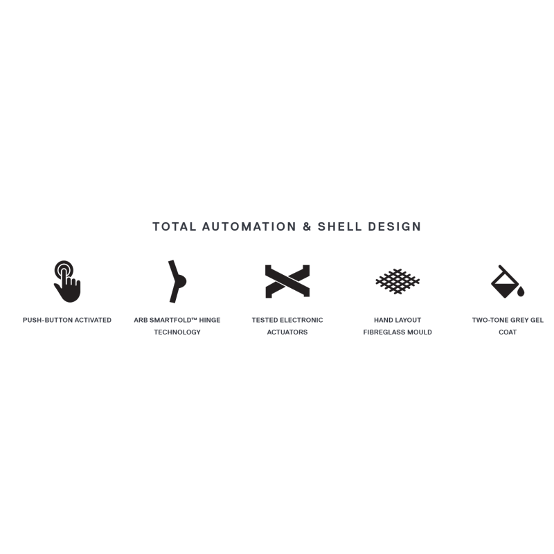 - ARB SmartFold™ hinge technology utilises hinge stays that enable completely automated operation by utilising the unique movement to enfold the tent's material - no more tucking in canvas!