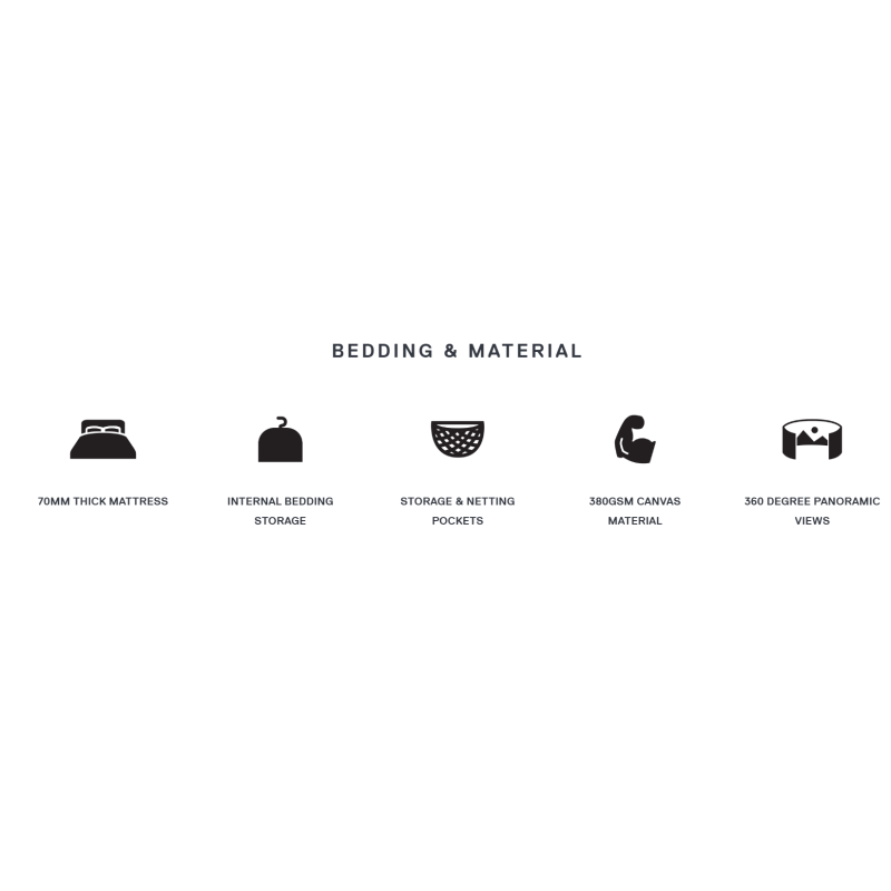 - deep roof cavities have been moulded into the design, fitted with 2x storage nets to provide carrying for pillows and other bedding when not in use