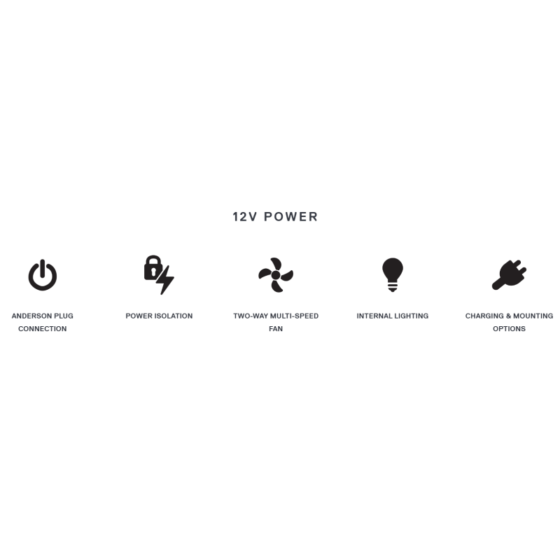 The Altitude is powered from the vehicle’s battery either via hard wire or plugged directly into a 12V Anderson plug. The cleverly-engineered power isolation feature ensures no battery draw when the Altitude tent is closed, turning off all lights and other load drawing devices once shut.