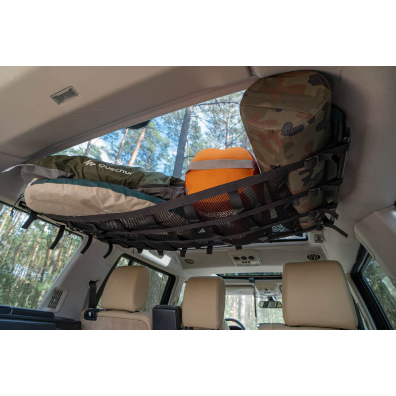 Intended to comfortably transport various items inside the cabin on the deck, such as sleeping bags, pillows, rugs. The dense mesh allows you to carry small items as well. The net has a wall that holds the items during braking.