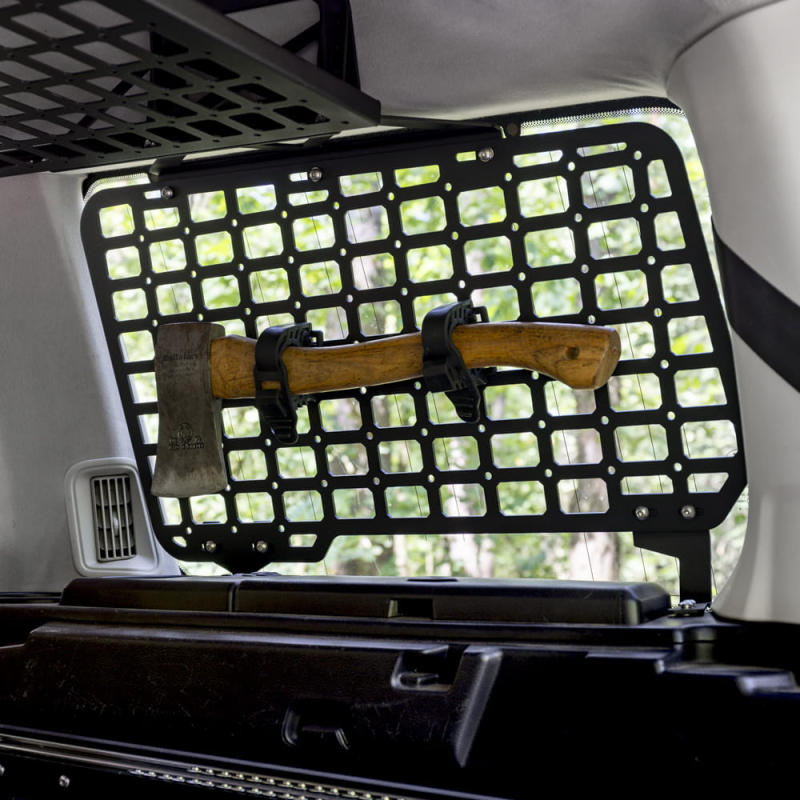Land Rover Discovery III/IV L319 2004-2016 (7 seater) internal window Molle panels have been designed to increase the possibilities of car space organization. They protect the windows from luggage inside and protects the luggage in case of a break in from outside. They enable the attachment of pockets and the installation of various accessories.