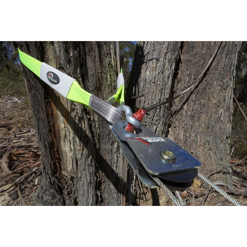 side plates sit snug against the pulley and eliminate the possibility of the winch cable becoming trapped in between enabling the use of snatch block without a co-driver