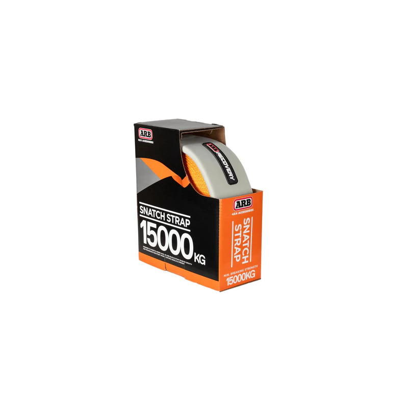 The ARB 15000 kg flat kinetic snatch strap – tow rope can be compactly rolled up and takes up less space during transport than round braided tow ropes.